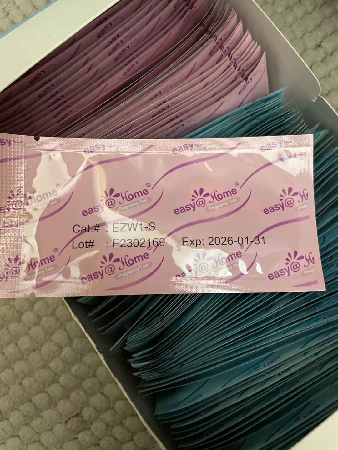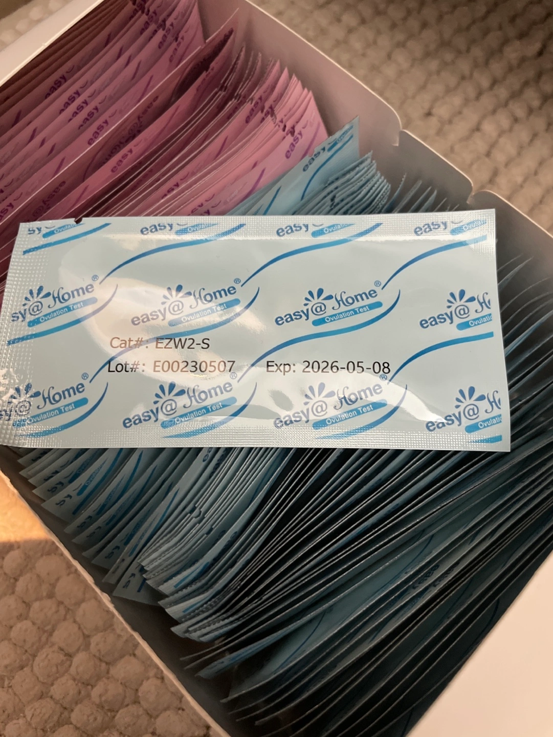 914Easy @ Home brand, 35 pregnancy tests and 73 ovulation tests left, all with 2026 expiry dates.