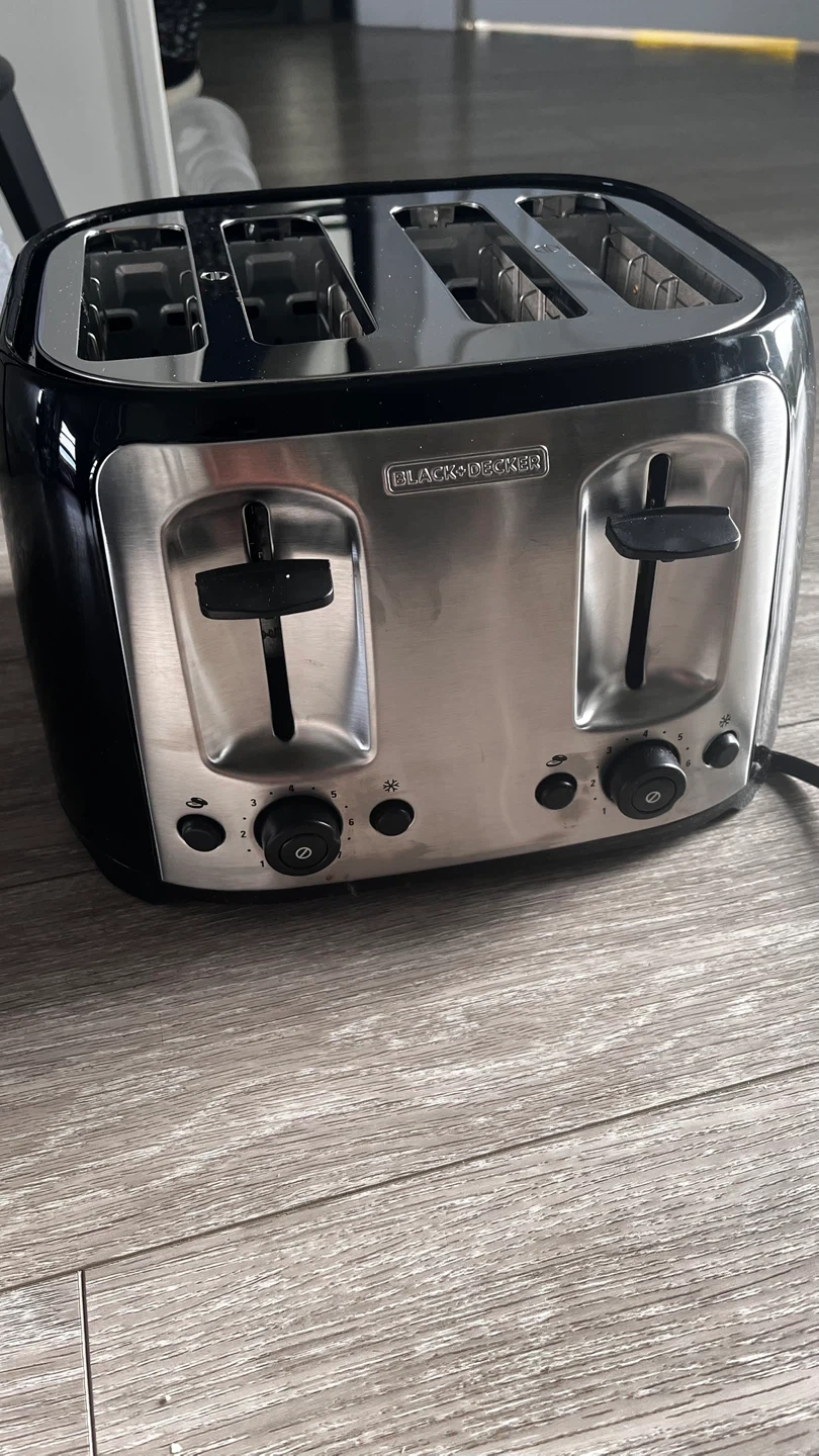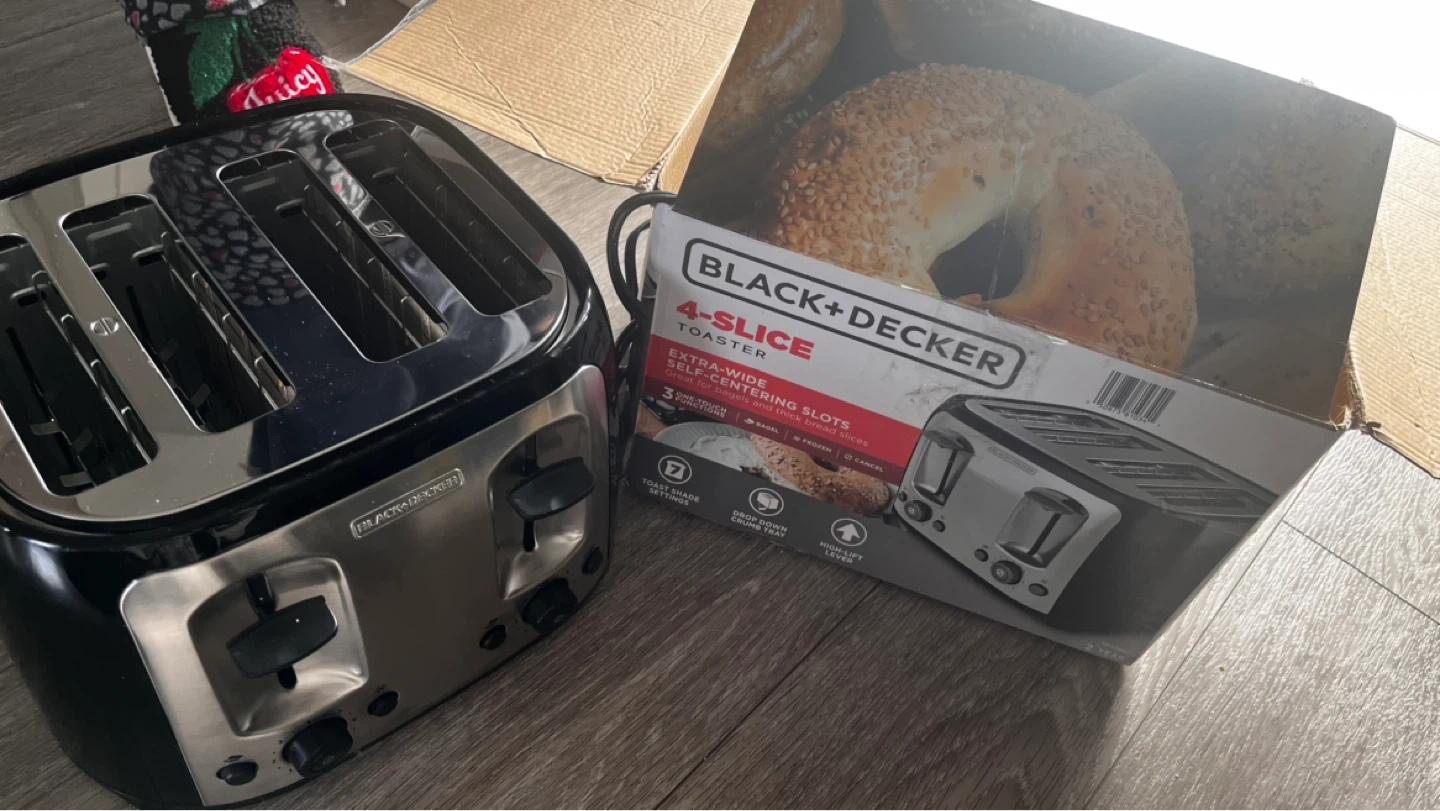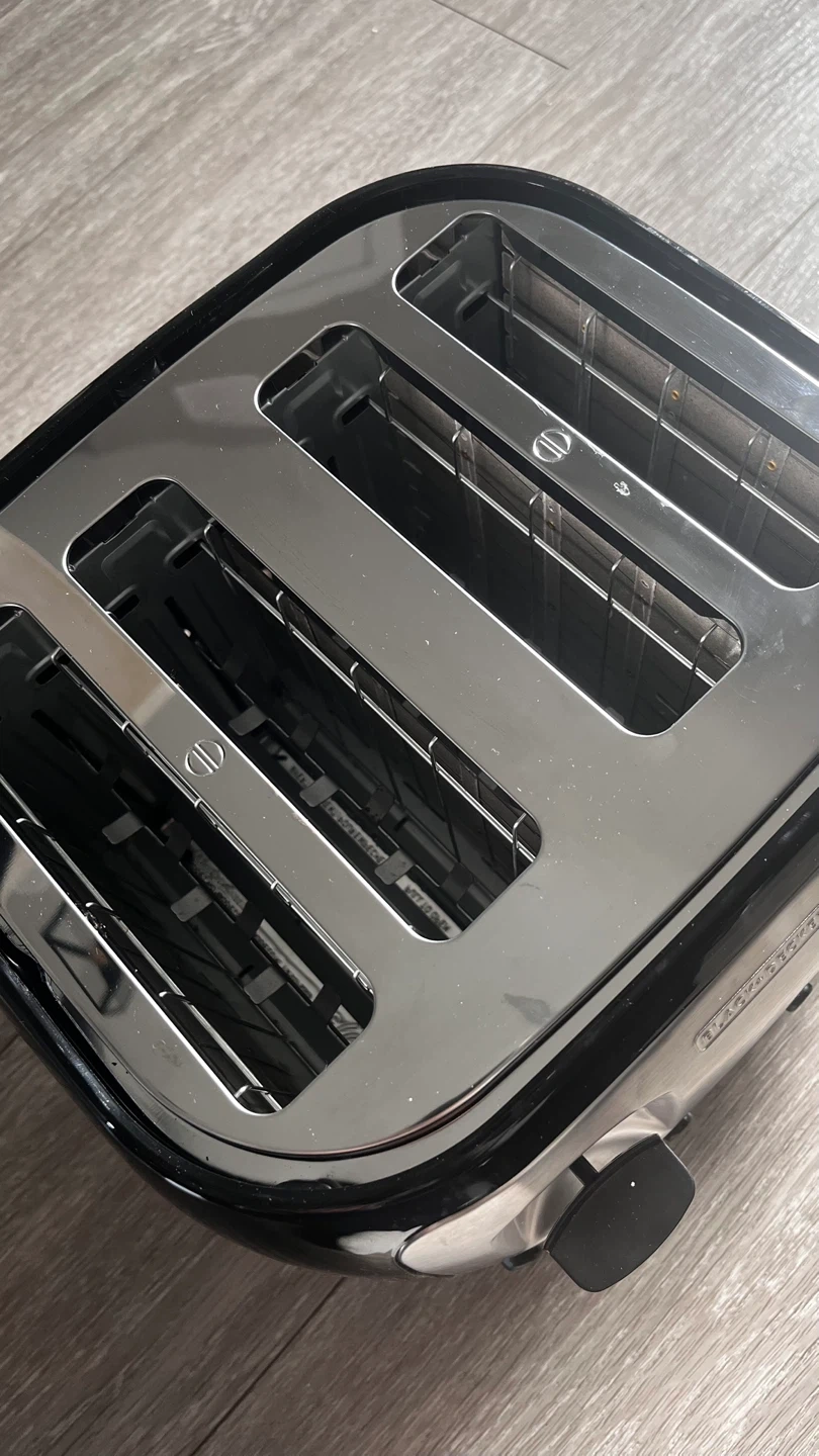 This BLACK+DECKER 4-slice toaster has extra-wide self-centering slots. It includes a crumb tray for easy cleanup. Ideal for toasting bagels, bread, and more!