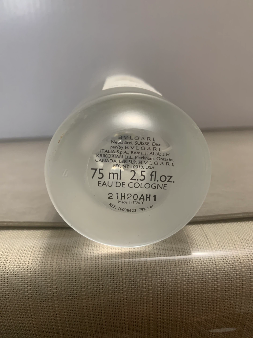 Bvlgari Eau Parfumee Au The Blanc Eau de Cologne. Bottle is 75 ml (2.5 fl. oz.). Made in Italy. It's 79% Vol.