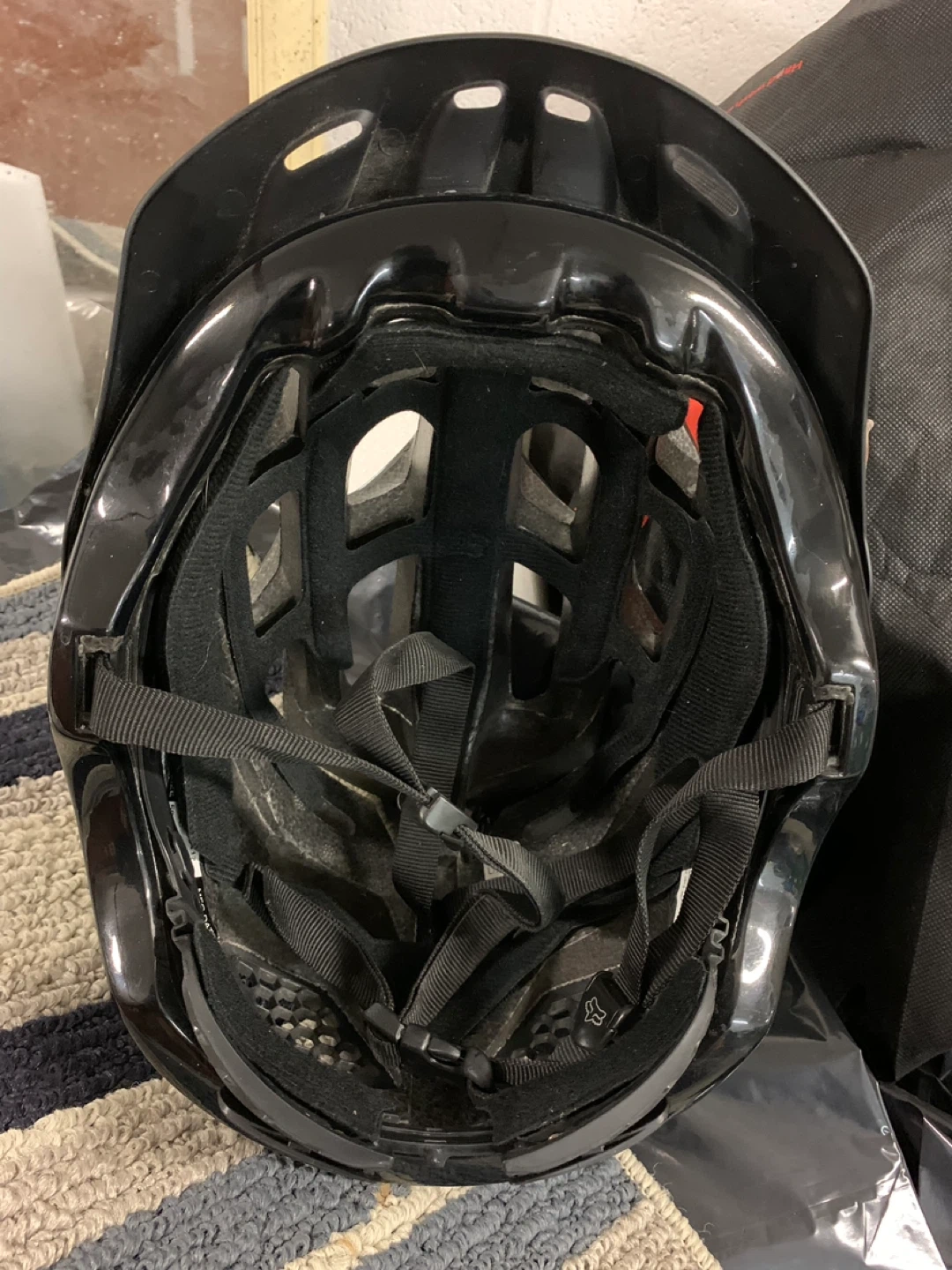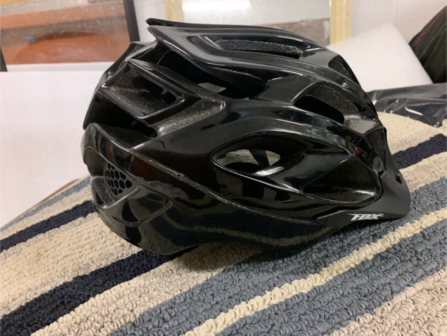 This is a black FDX cycling helmet in L/XL size. It features a black, glossy finish and multiple vents for airflow. Manufactured in September 2011.