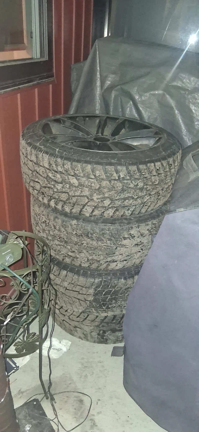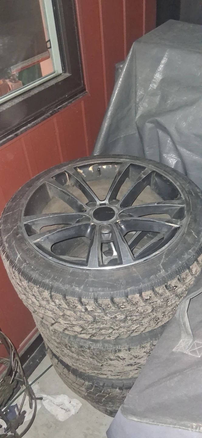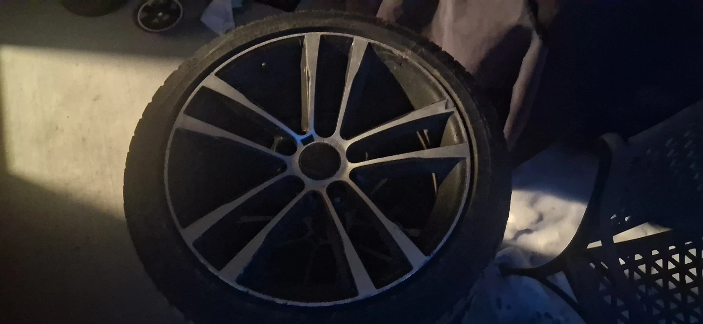 Four rims 225/45 R17's 5×120 bolt patern with a little bit of tread left on the winter tires. Also comes with 3 low profile summer sport tires.
