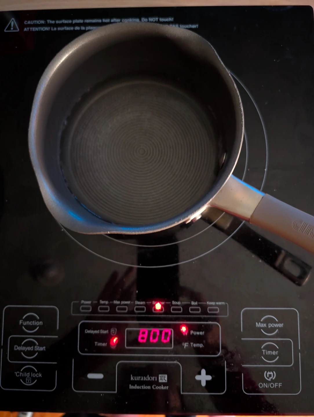 Kuraidori 1800-Watt Portable Induction Cooker with multiple cooking functions. Displays power and temperature settings. Includes delayed start and timer options. Perfect for various cooking needs! Fast and efficient! Easy to clean cersmic glass surface. Maggiejs.ca/review-kuraidoris-portable-induction-cooktop