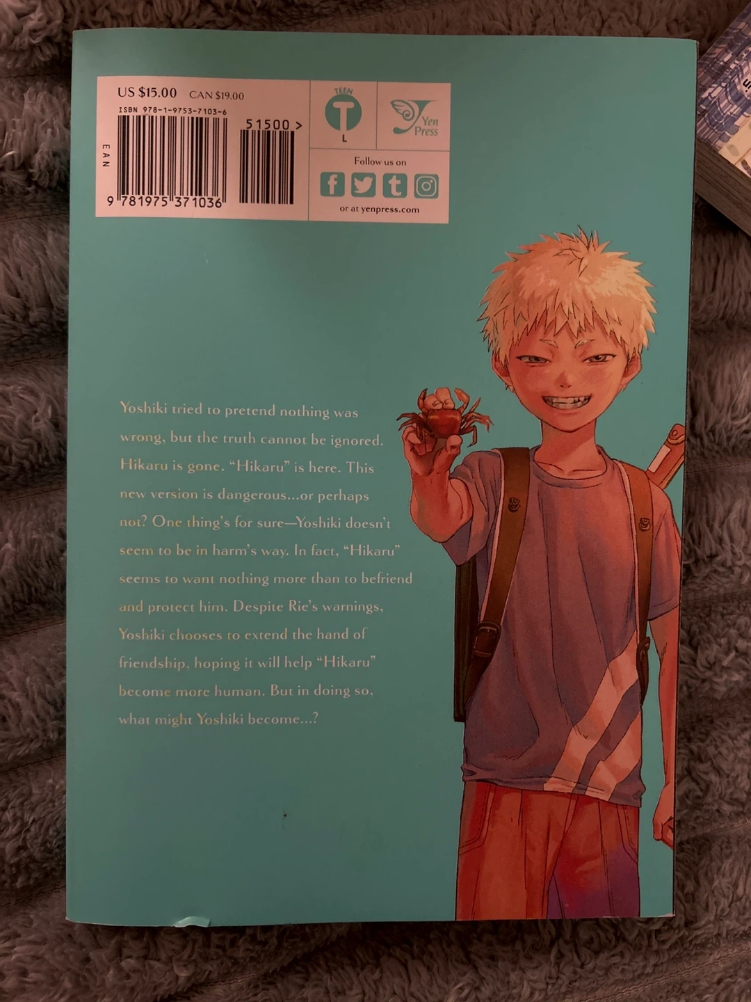 This is volume 2 of the manga series The Summer Hikaru Died. It's written and illustrated by Mokumokuren. The story follows Yoshiki and his friend Hikaru.
