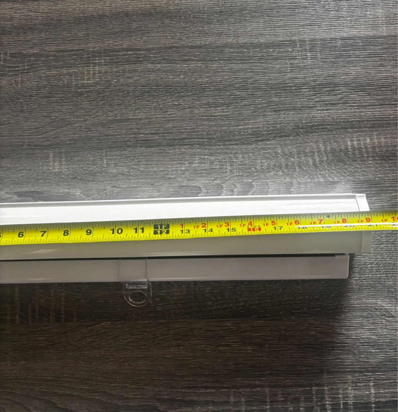 White zebra roller blind shade, 21 inches wide. Includes mounting hardware and screws. Offers privacy and light control with alternating sheer and opaque stripes.