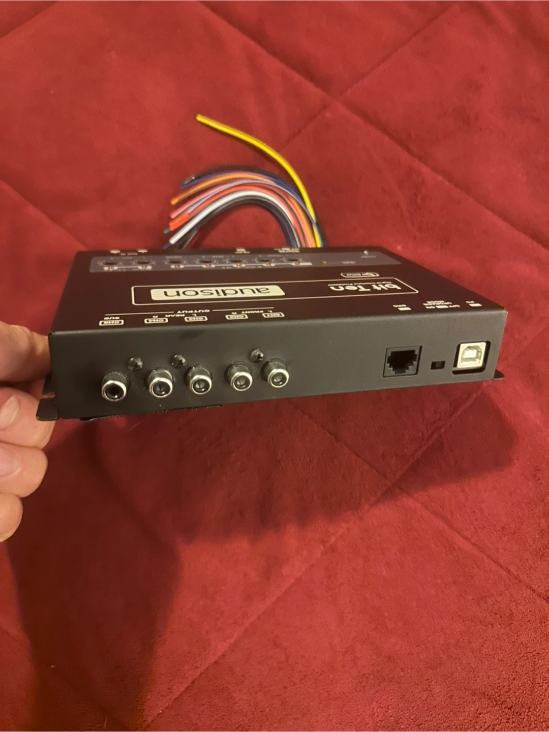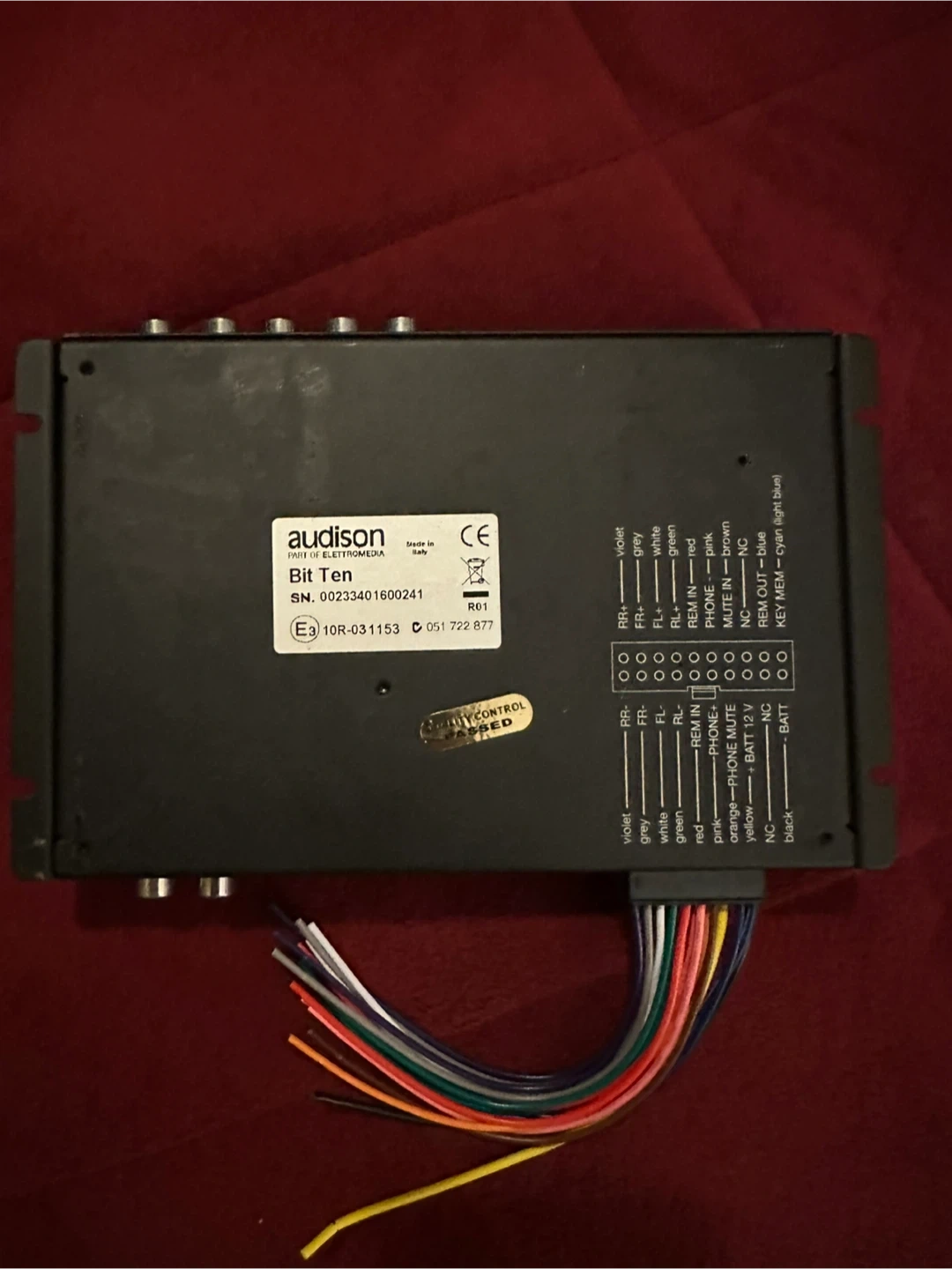 This is an Audison Bit Ten digital crossover processor. It's a compact unit for car audio systems. It includes wiring harness.