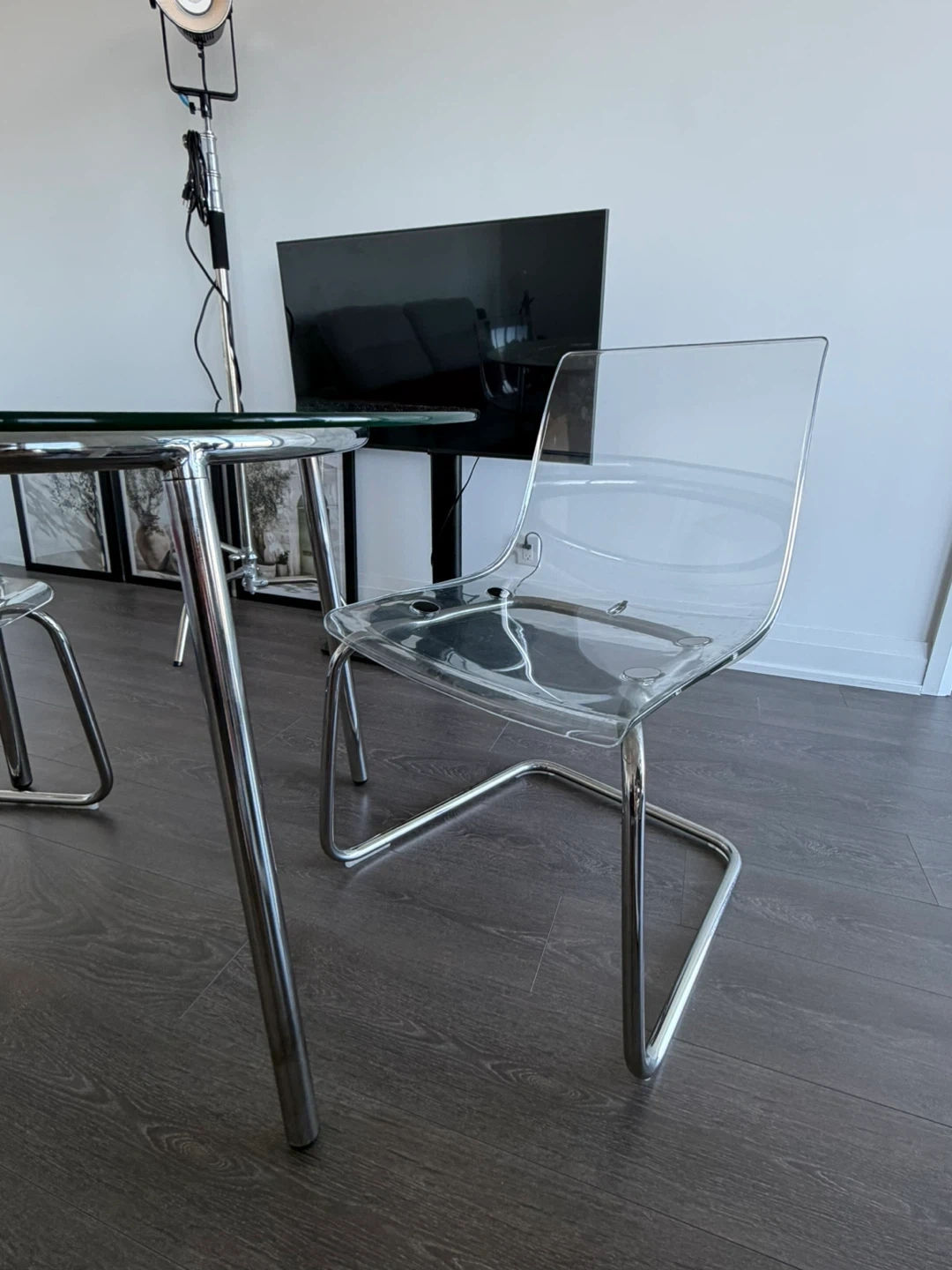 Clear Glass Dining Table + 2 acrylic chairs