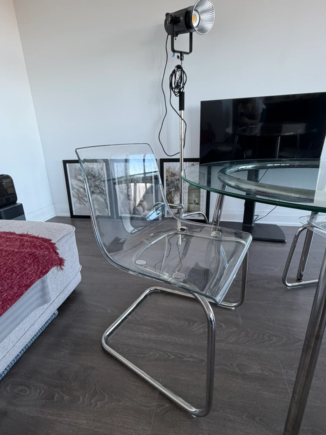 This comes with a bonus 2 acrylic chairs in good state as well that match the table.