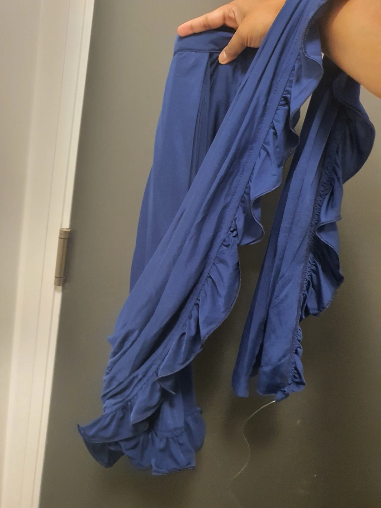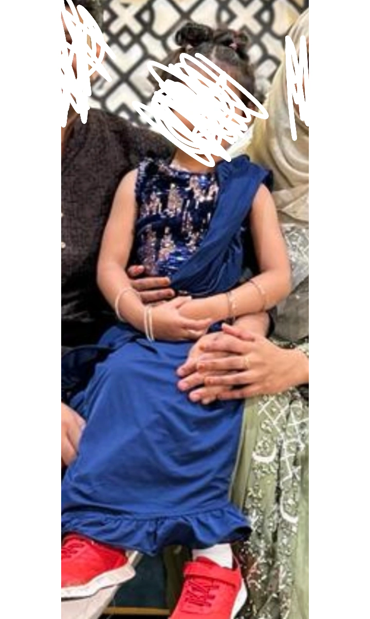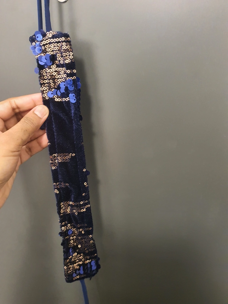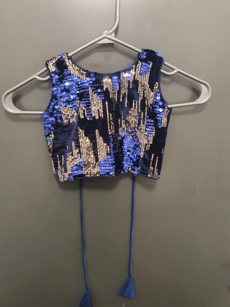 Beautiful navy blue choli and skirt set. Choli features velvet fabric with blue and gold sequins. Skirt has ruffles. Perfect for special occasions.