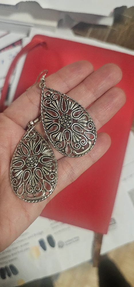 Beautiful pair of silver teardrop earrings. Intricate filigree design. Lightweight and elegant. Perfect for everyday wear or a special occasion.