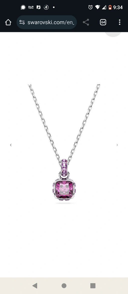 Elegant Swarovski necklace. Features a Birthstone pendant accented with smaller square cut. Silver-toned chain. Beautiful statement piece. Birthstone pendant Square cut, February cash and pick up only