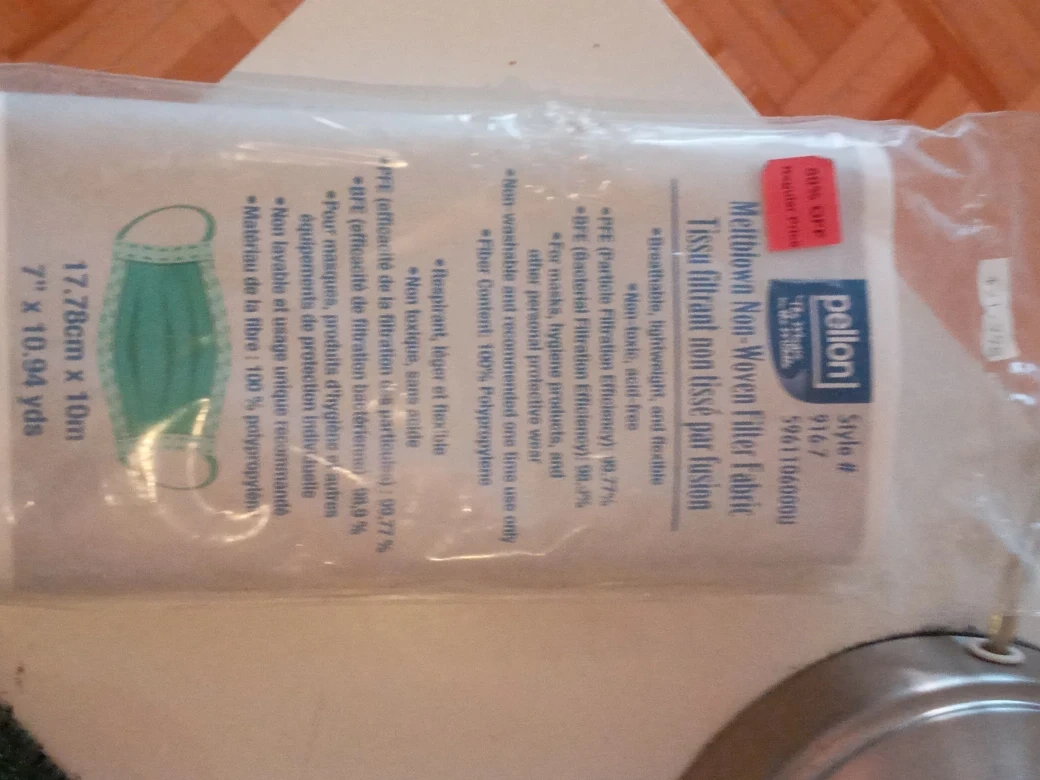 Lightweight, breathable, and flexible filter fabric. Suitable for masks and other hygiene products. 100% polypropylene. Non-washable; single use recommended.