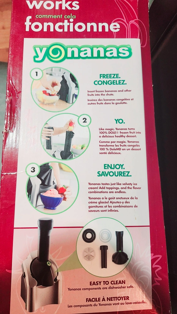 YONANA MACHINE..COMES IN BOX WITH ALL PARTS, RECIPE BOOK AND MANUAL.