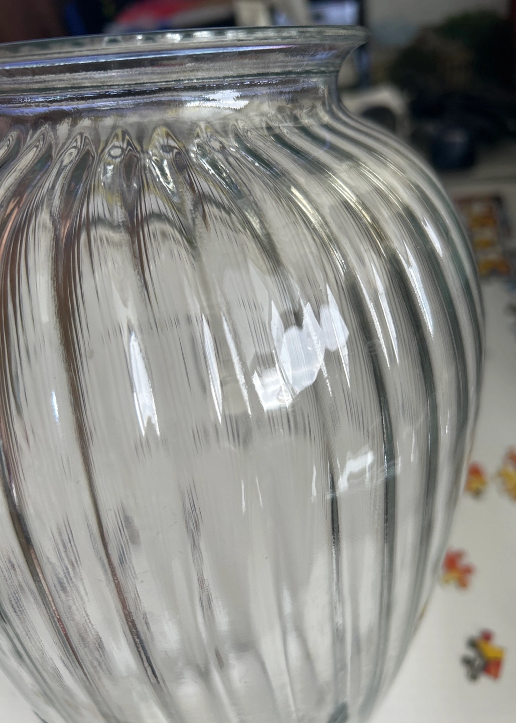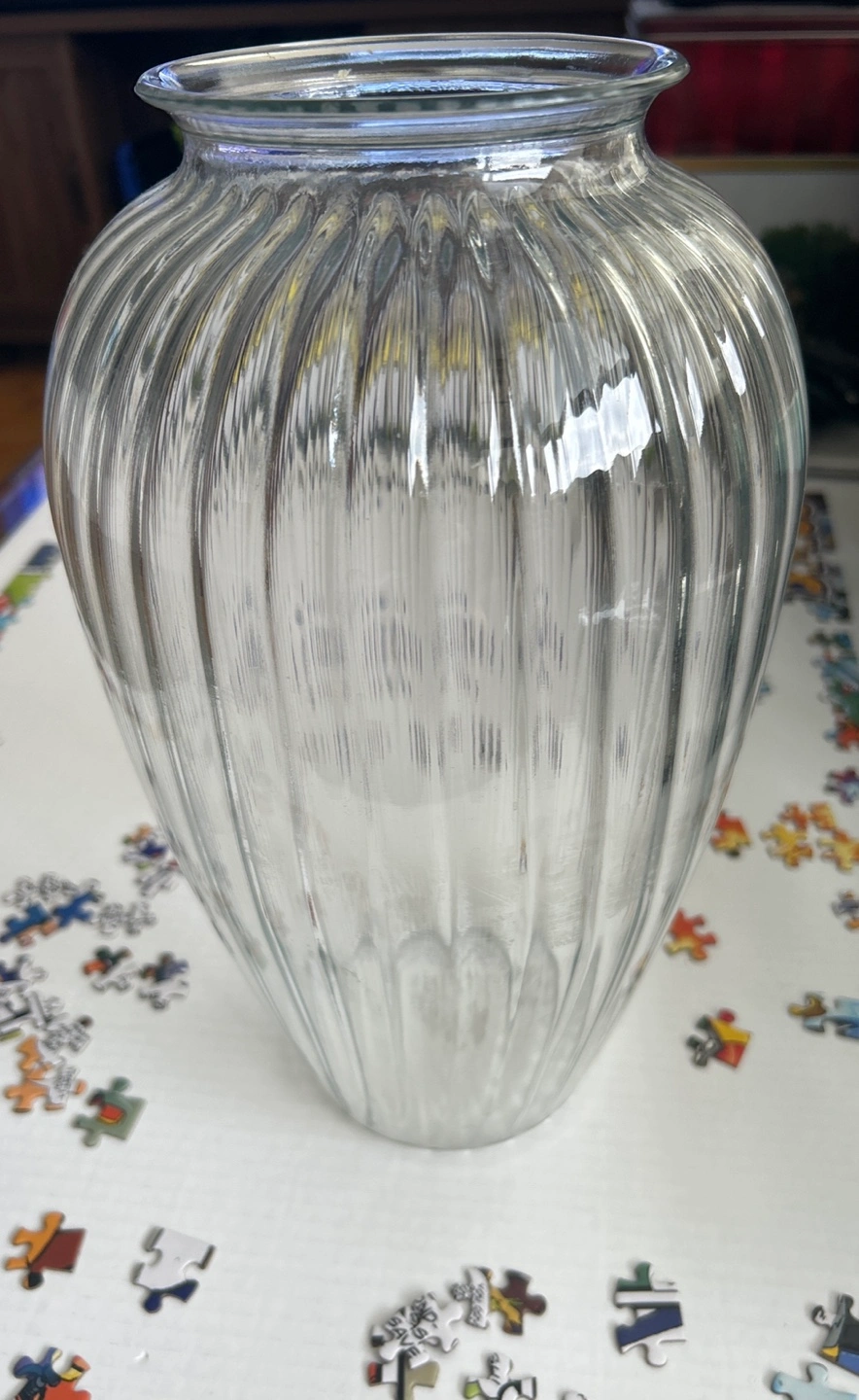 Clear Glass Ribbed Vase