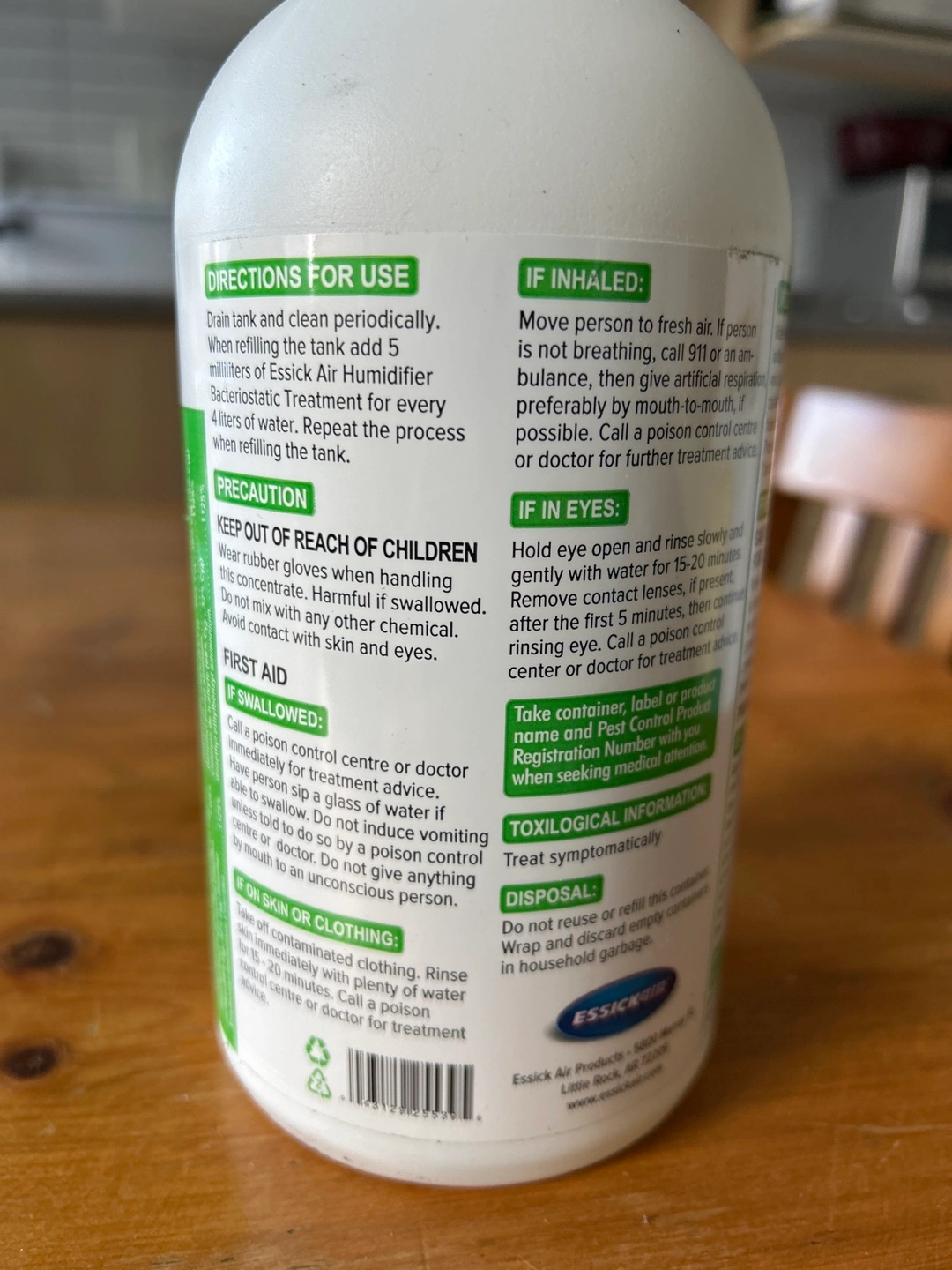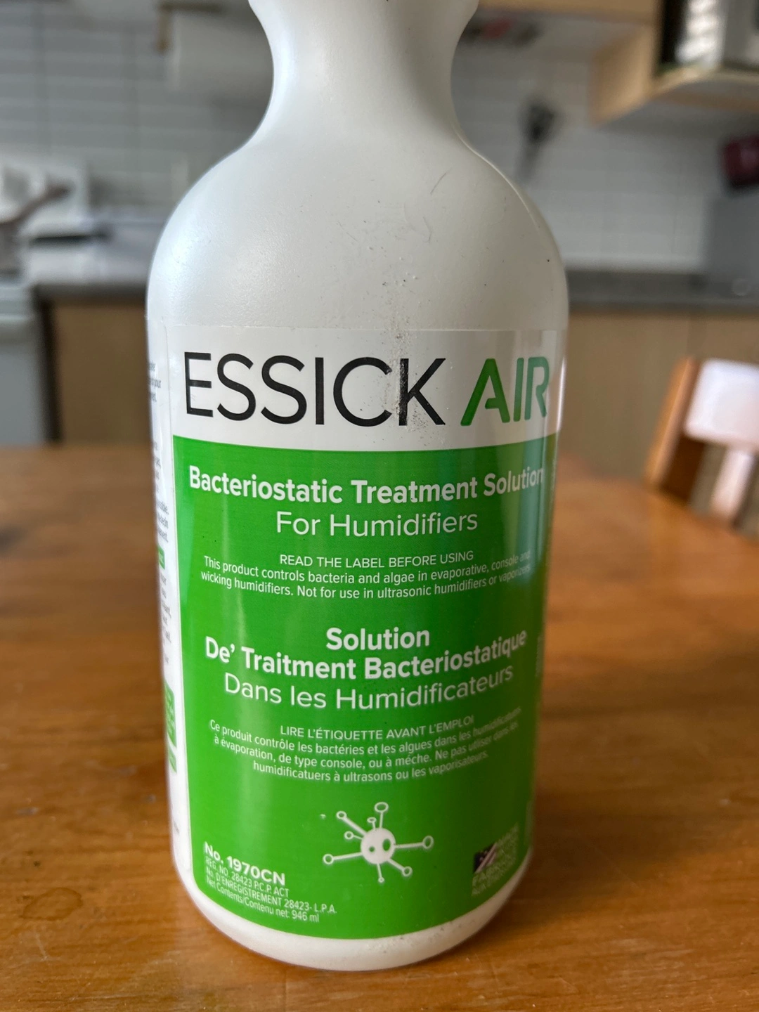 Unopened bottle of Bacteriostatic Treatment Solution for humidifiers.