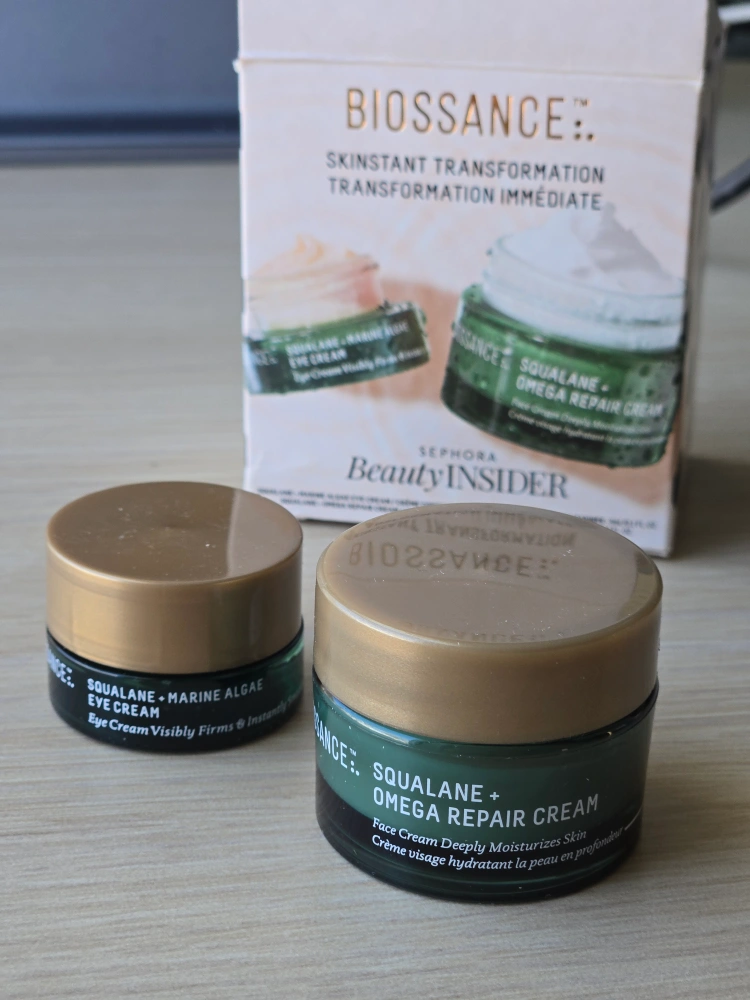 116Miniature set of Biossance skincare. Includes face cream and eye cream. Brand new , travel size