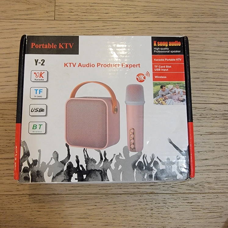 Wireless karaoke microphone and speaker. Includes TF card slot, USB input, Bluetooth connectivity. Compact and portable design. Great for singing and parties. Voice changer.