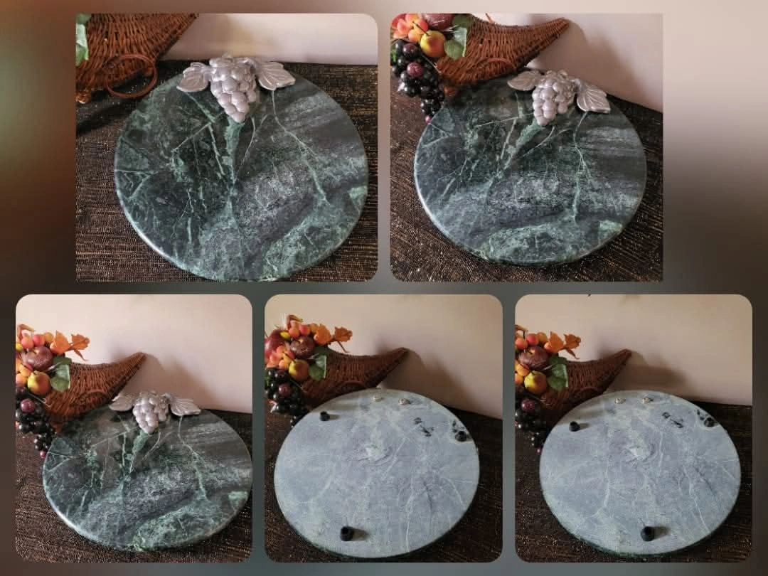 Vintage Natural Green Marble Cheese Block with Pewter Grape detailing
