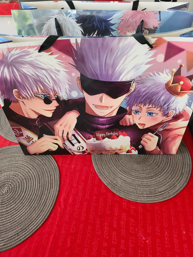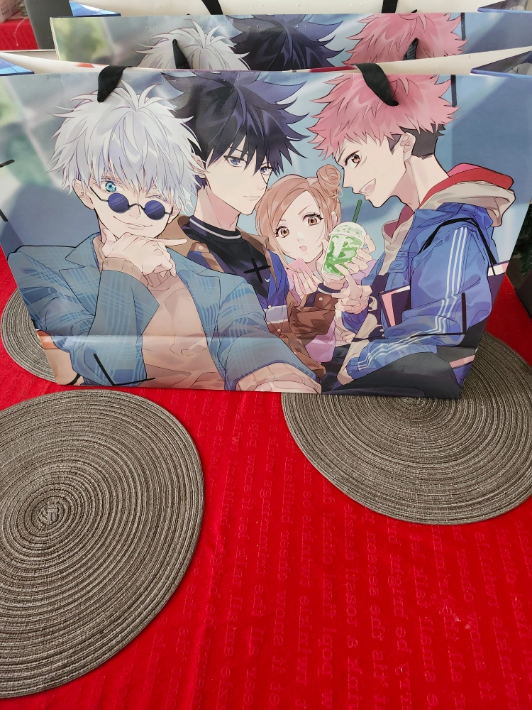 Jujutsu kaisen bags, with images on each side.