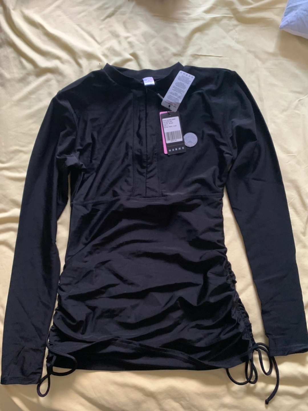 Brand new with tags. Black sun guard shirt. Size small. Long sleeves. Drawstring detail. UPF 50+ sun protection.