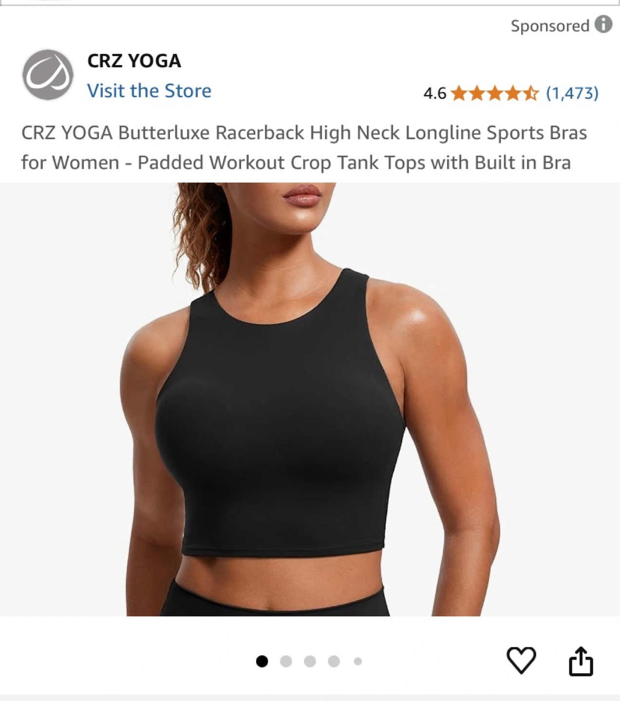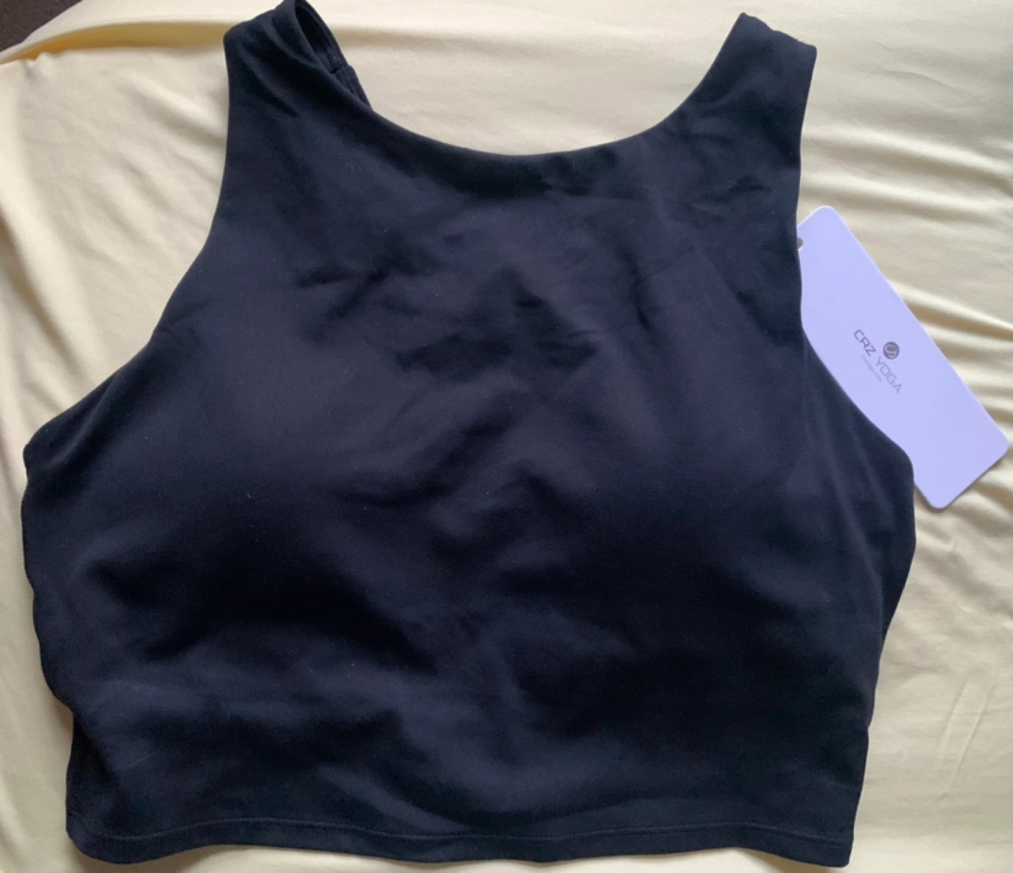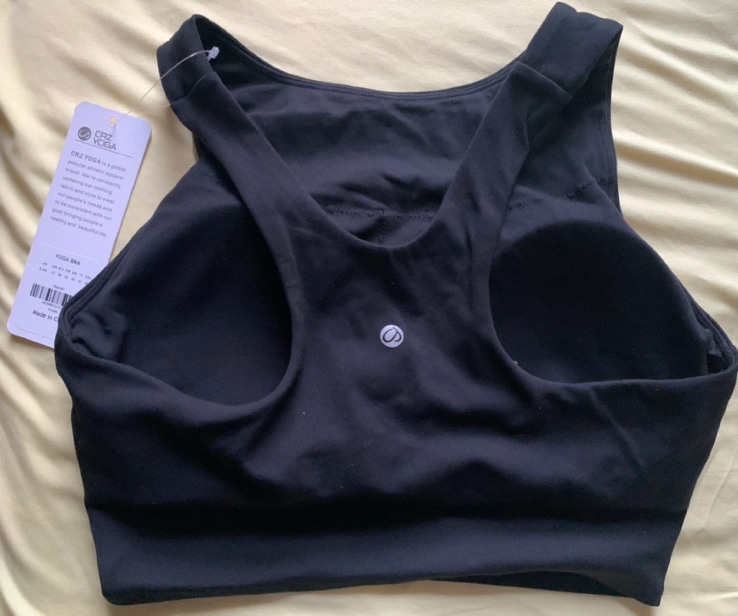 New with tag Black yoga bra. Padded workout crop tank top. Built-in bra. Racerback style. High neckline. Size Small Retails for $50 on amazon