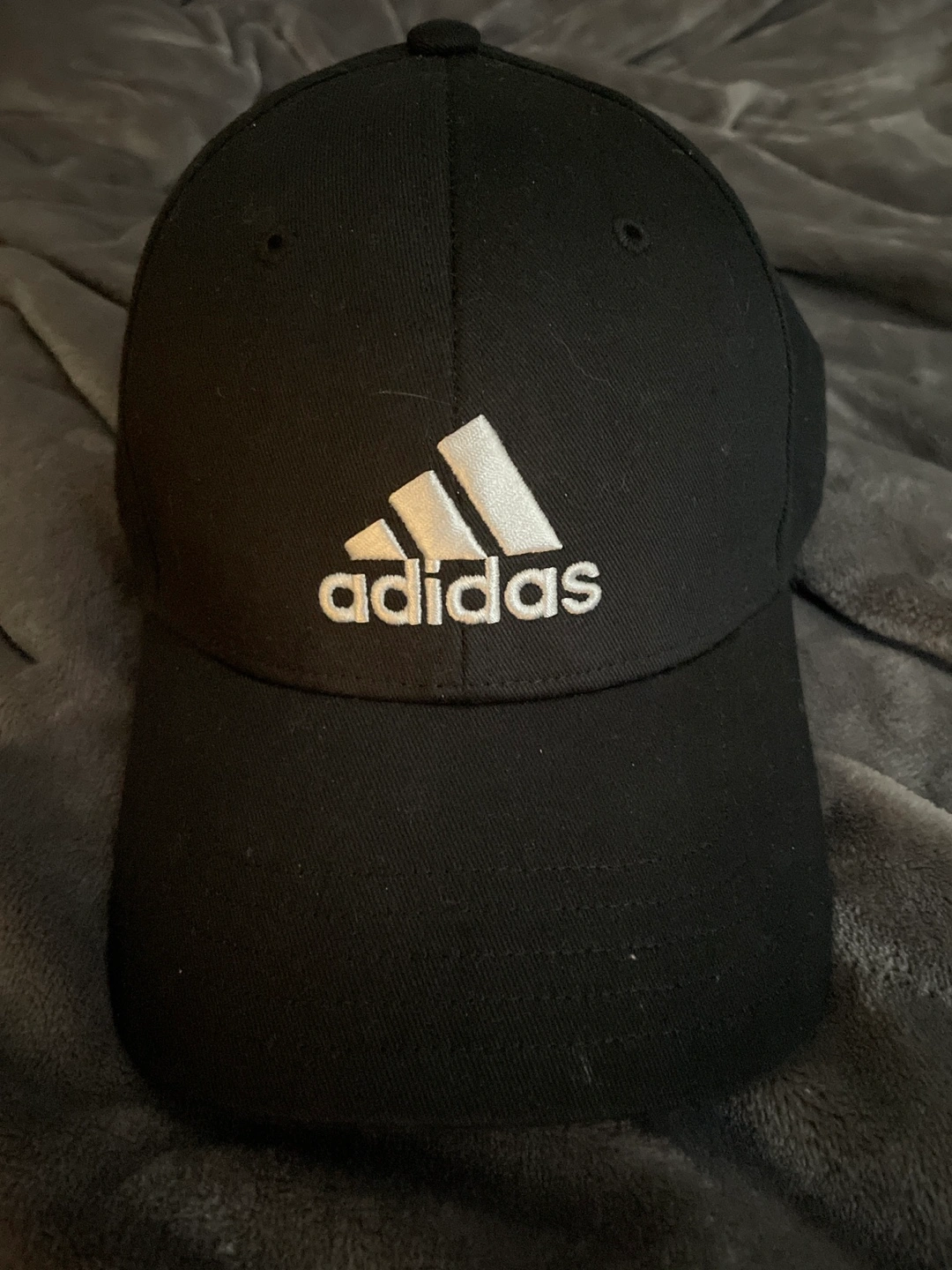 Classic black baseball cap. Features the Adidas logo. Adjustable.