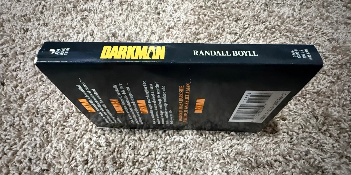 The vintage 1990 movie tie-in paperback by Randall Boyll is based on the screenplay by Chuck Pfarrer, Sam Raimi, Ivan Raimi, Daniel Goldin, and Joshua Goldin. It’s a must-have for fans and collectors of the Darkman saga.