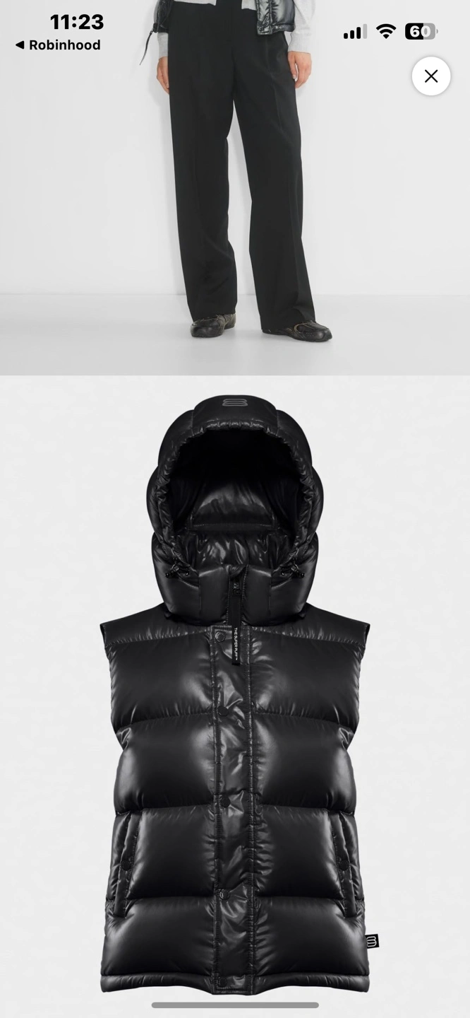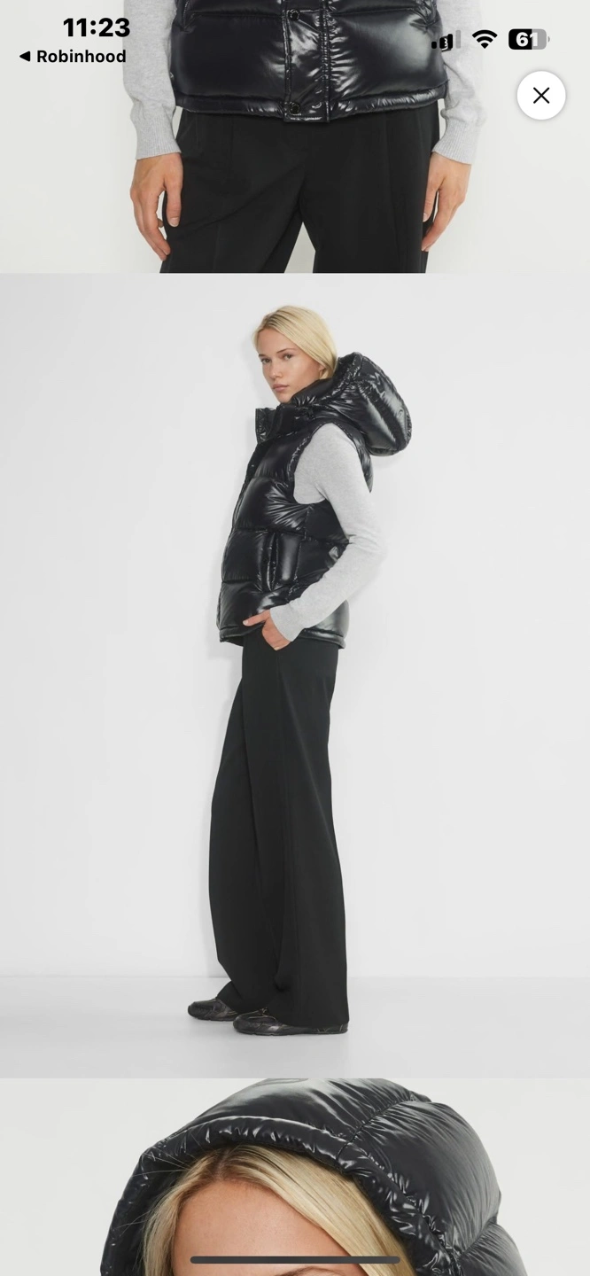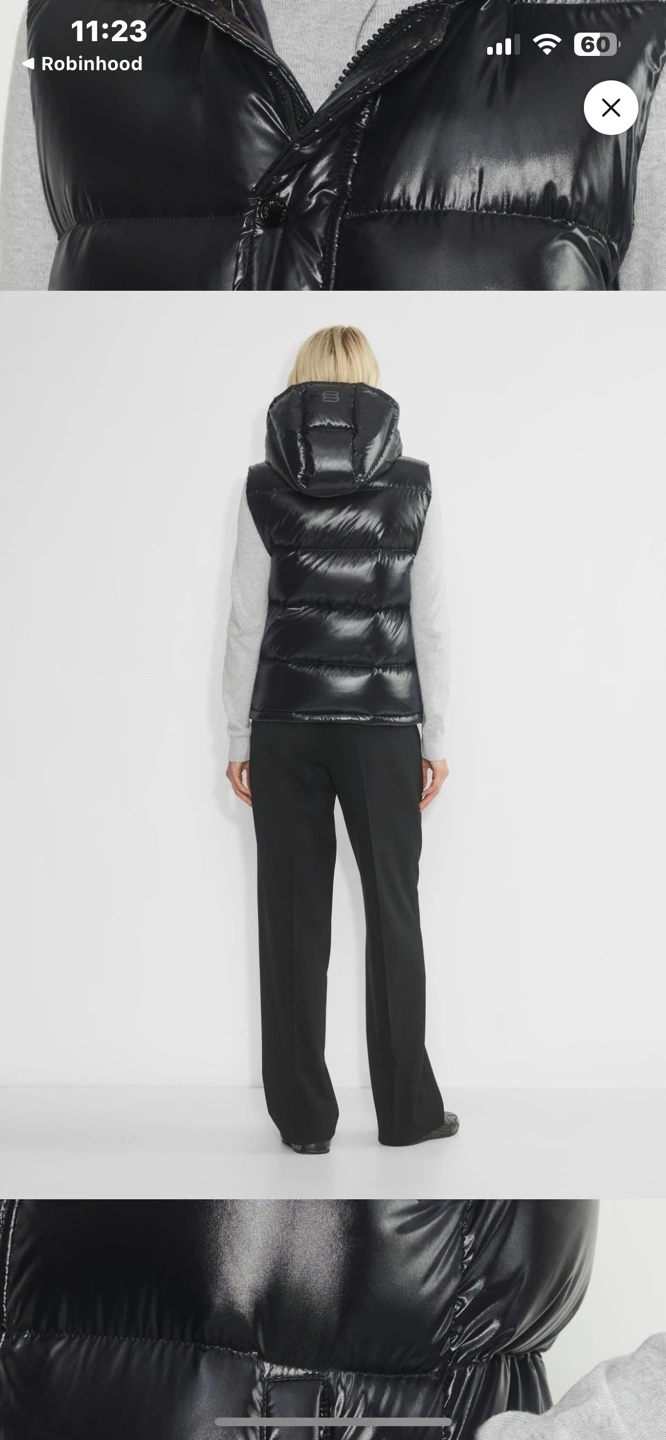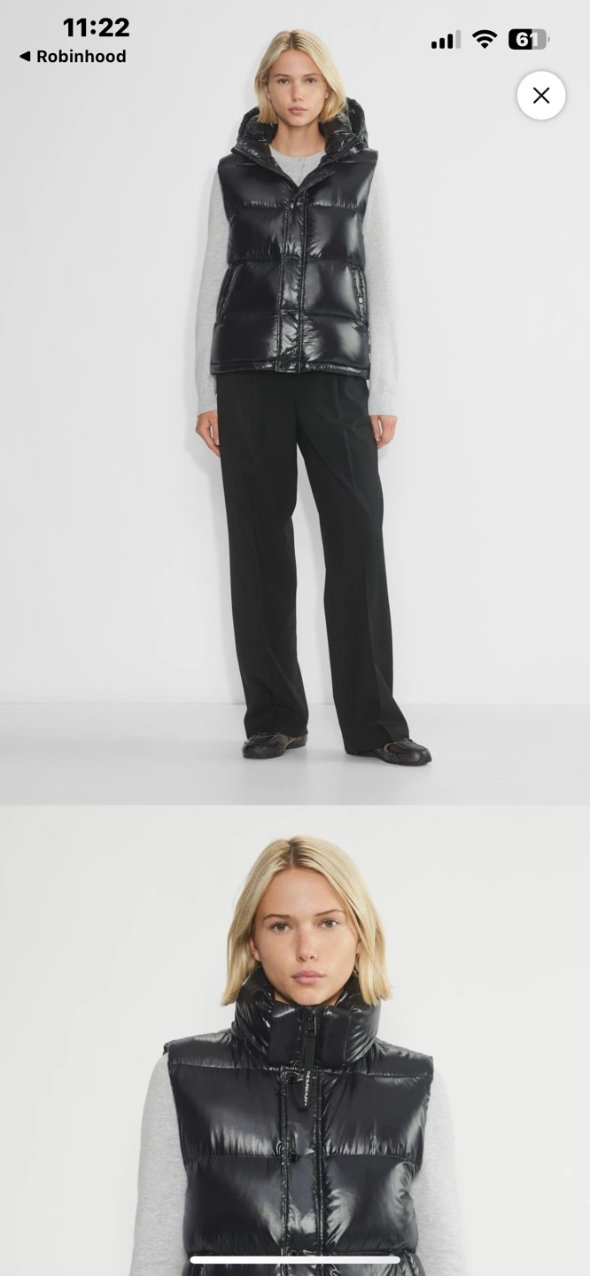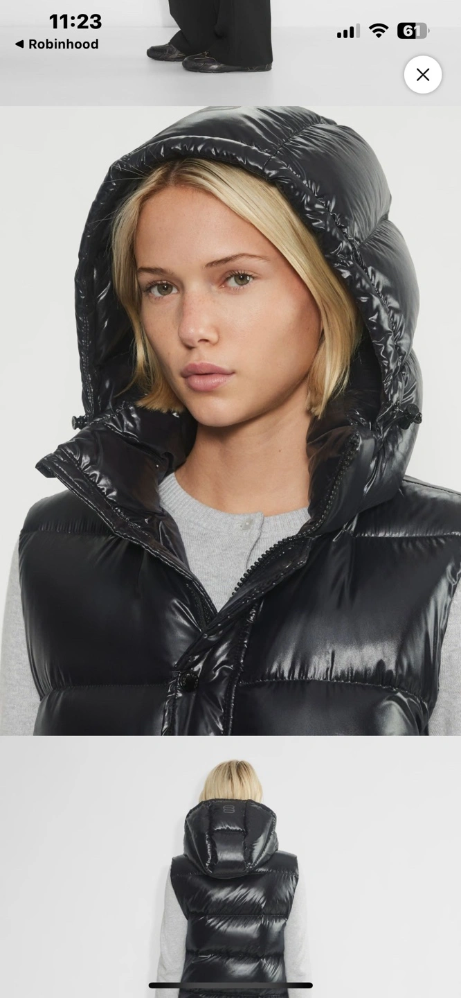 Aritzia Black shiny puffer vest with hood