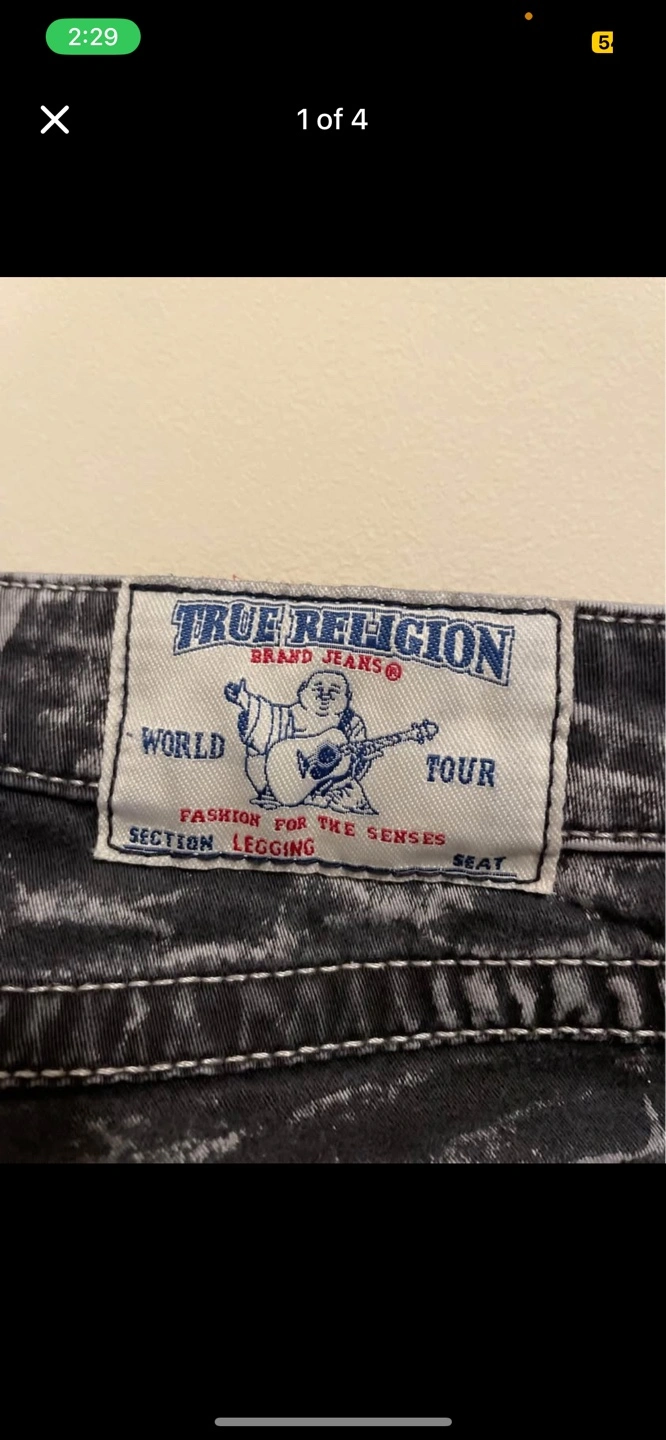 75True Religion Brand Jeans. World Tour collection. Black and grey acid wash. Legging style. Size 25 women’s. Authentic. low rise