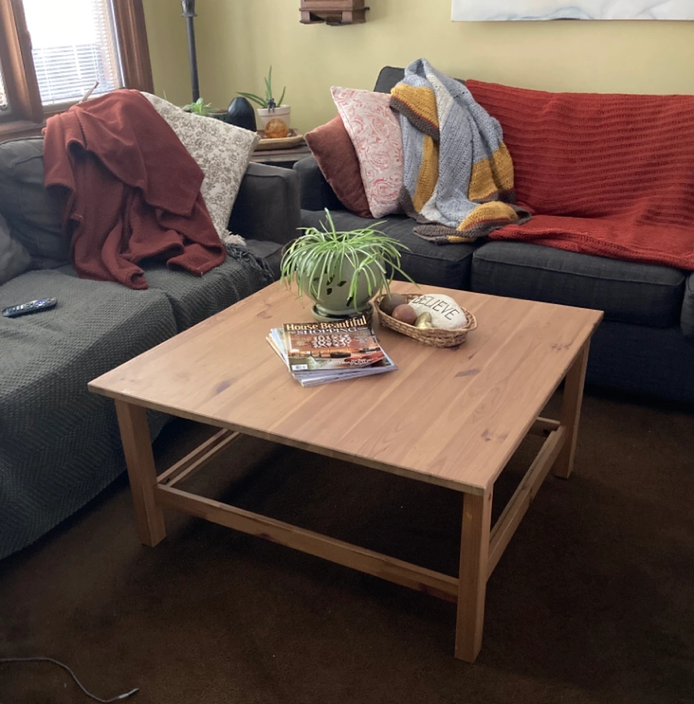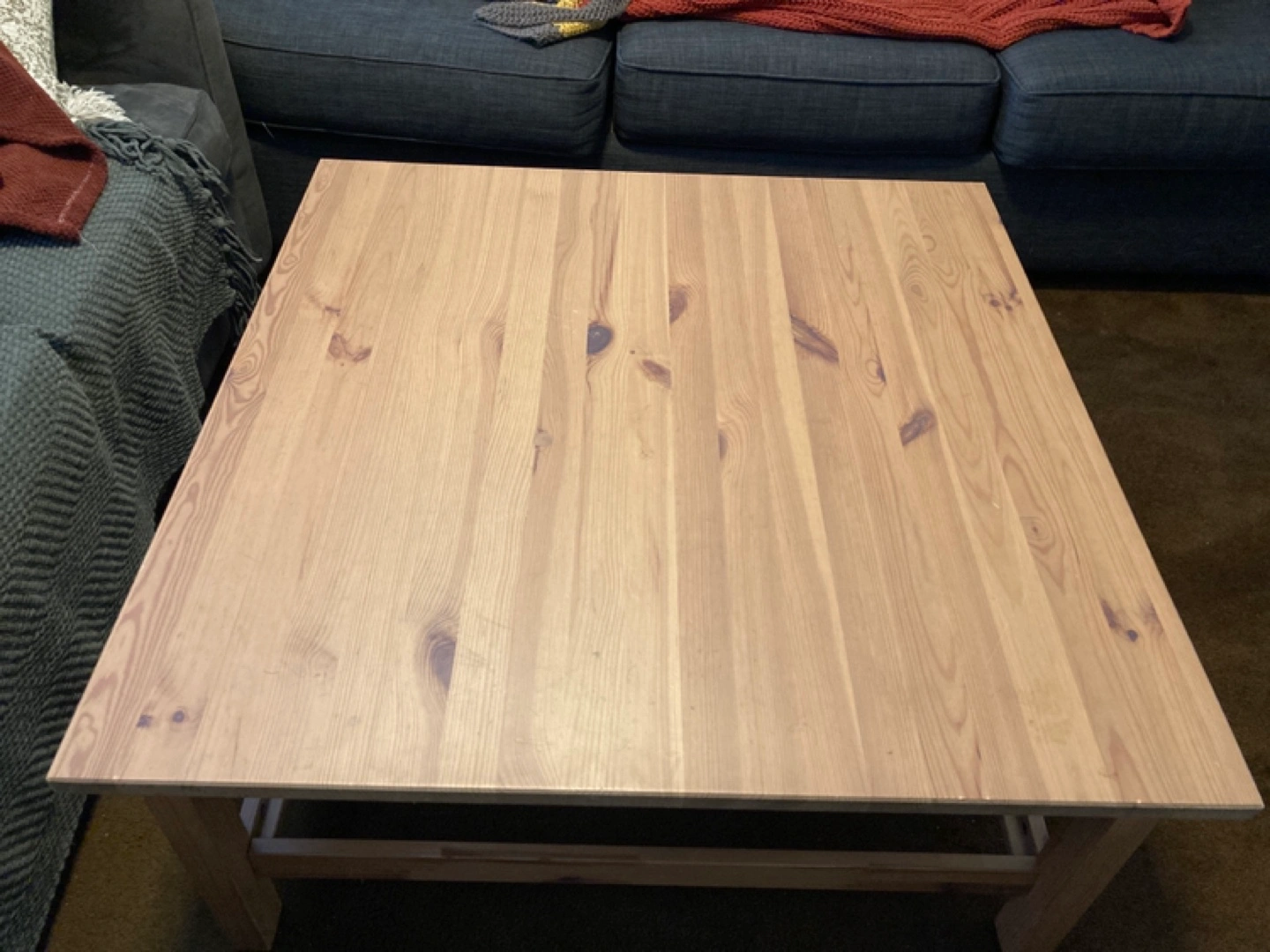 IKEA square coffee table, light pine wood. Simple design, sturdy build & in great shape.