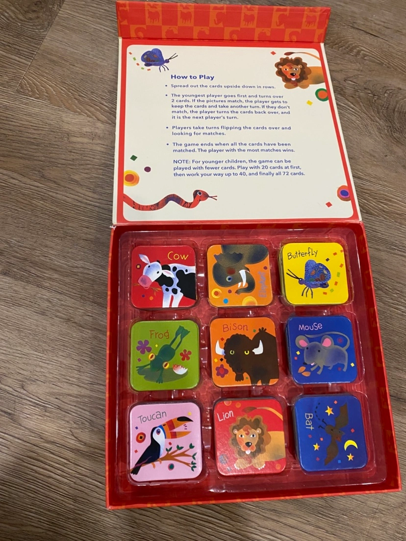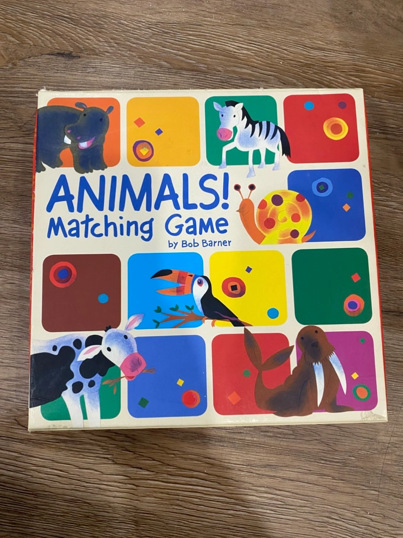 Matching game featuring various animals. Parts are in great condition. Fun for children. Box shows some wear.