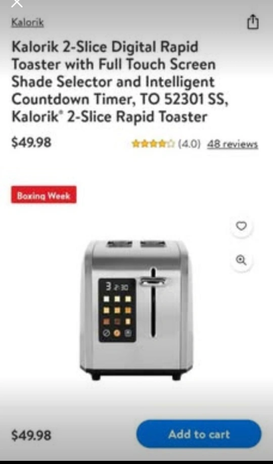 Kalorik 2-Slice Digital Rapid Toaster - Stainless Steel