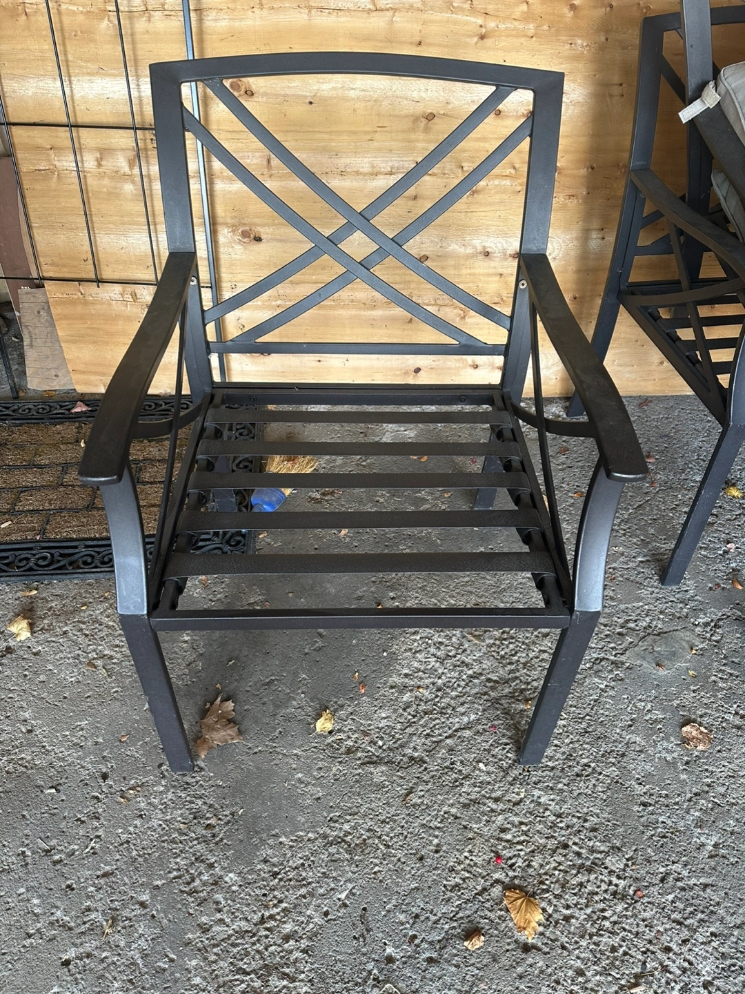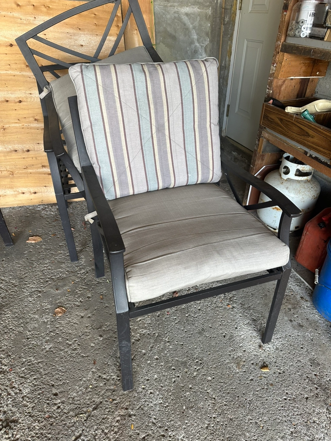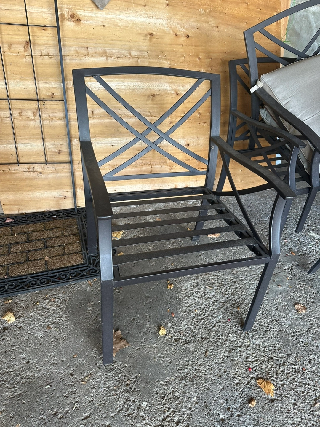 Price is for 6 chairs. In very good condition. Aluminum. No rust. Weather proof. Black finish. Also has cushions (included) but they need a cleaning.