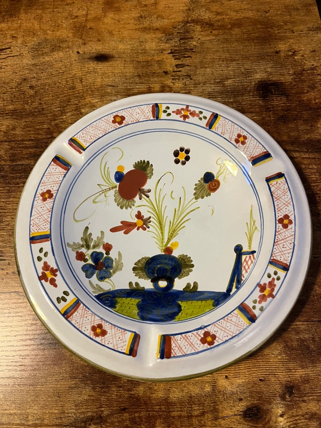 Unique, hand-painted ashtray. Features colourful floral design. Circular shape. Made in Italy. Collectible item. Faenza ceramic ashtray, Ricciardelli. Vintage 80s. Hand painted in excellent condition. 9 inches diameter.