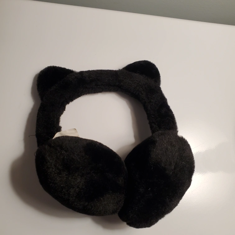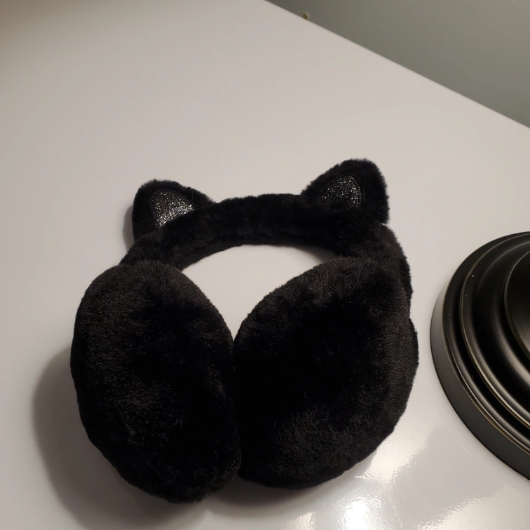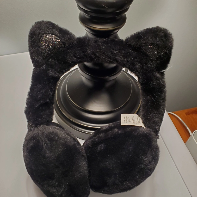 Fuzzy black earmuffs. Features sparkly cat ears. Perfect for winter. Has a loose thread but in otherwise good condition. Located northside.