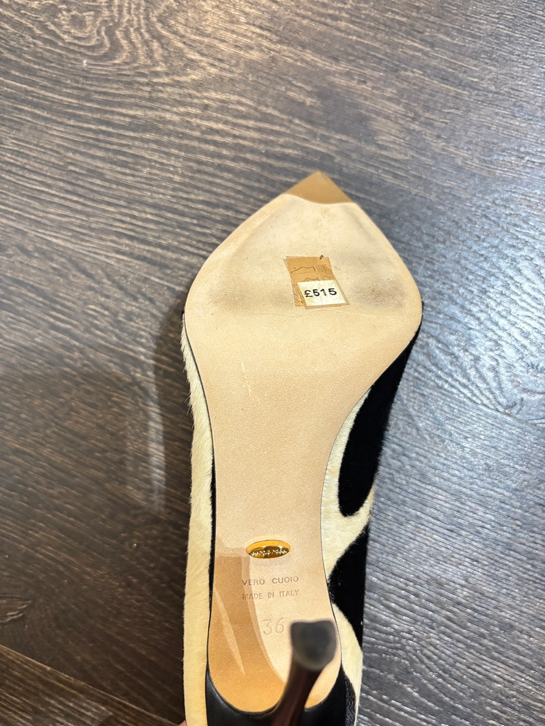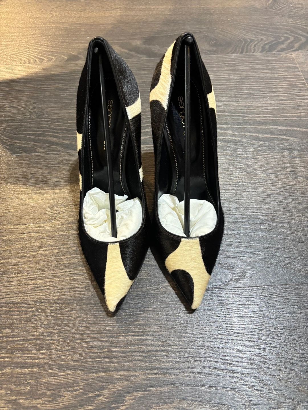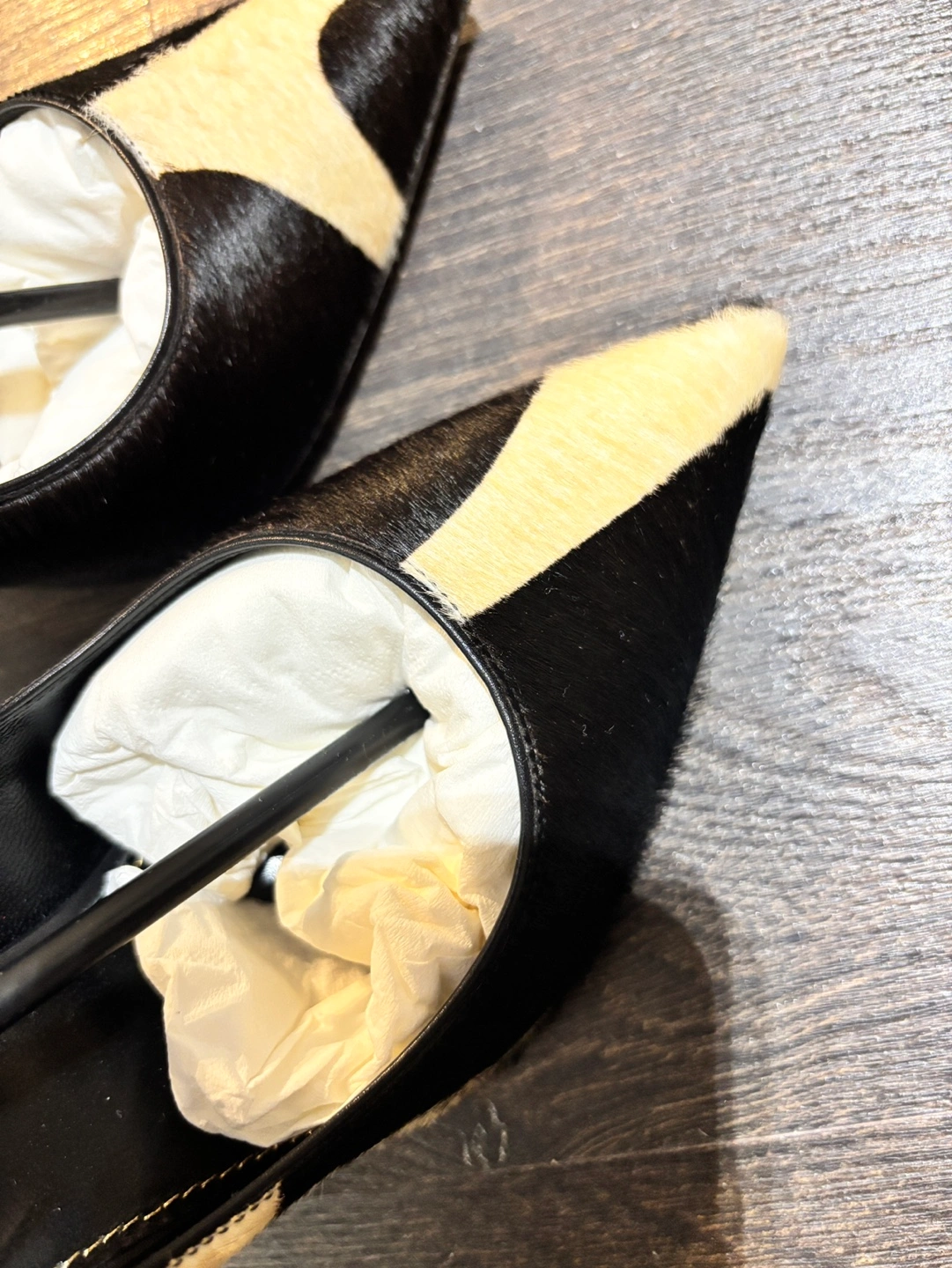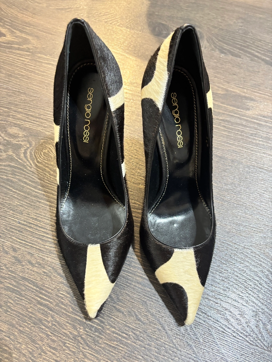 - Stunning Sergio Rossi run-way limited edition pumps - Pointed toe and stiletto heels (10.5 cm) - Upper: black and ivory pony hair - Insoles: nappa leather - Soles: leather - Made in Italy - Purchased in London, England - Retails for about $900 (purchased in London) - Comes with original dust bag and box - Size 36 - Premium quality - Been kept in 24/7 air-conditioned closet in a smoke-free & pet-free home - Excellent condition; band new, never worn - Extremely good value for those who are looking for a pair of premium quality Italian-made stylish Sergio Rossi pumps but don’t want to pay a premium price