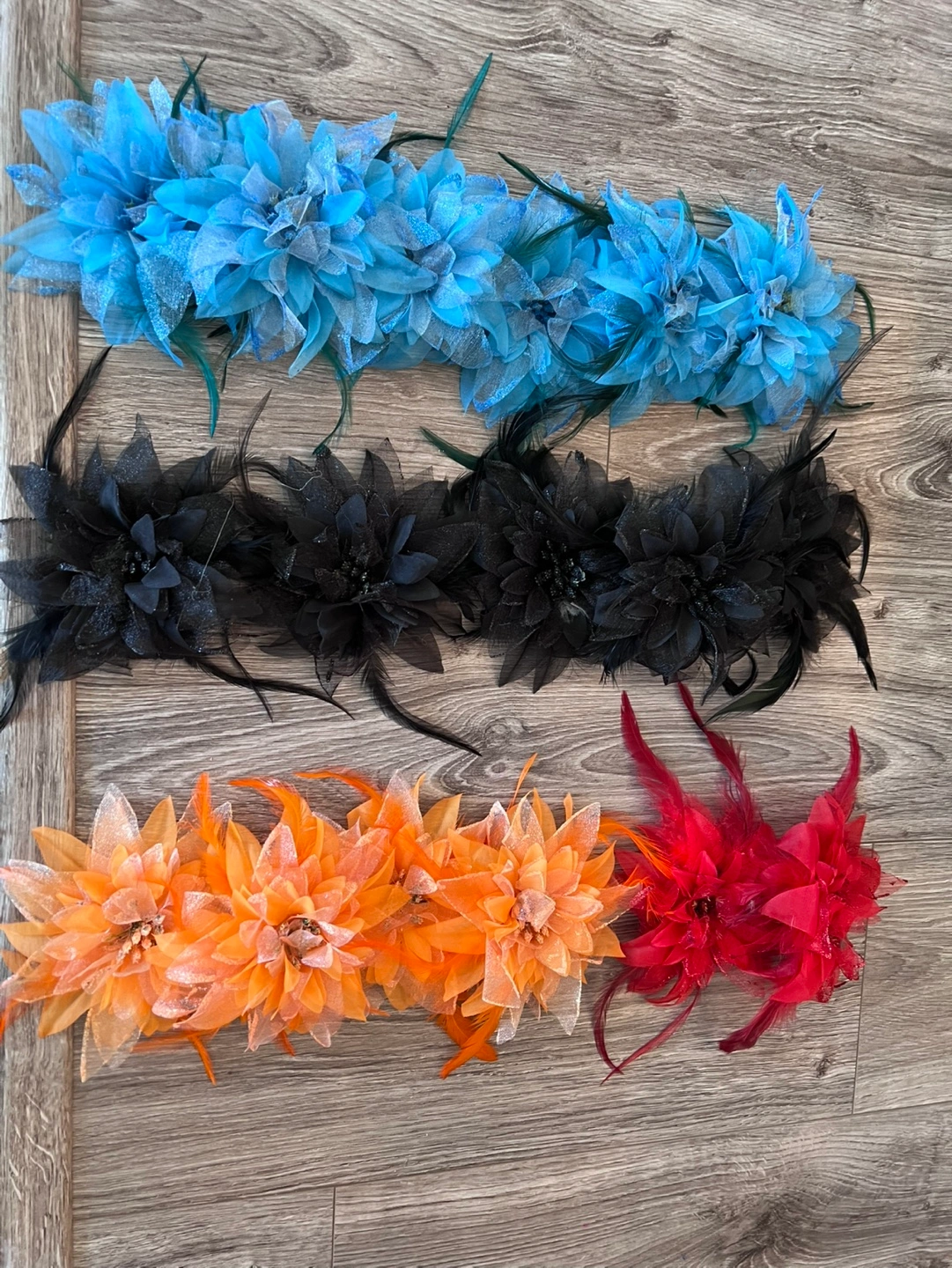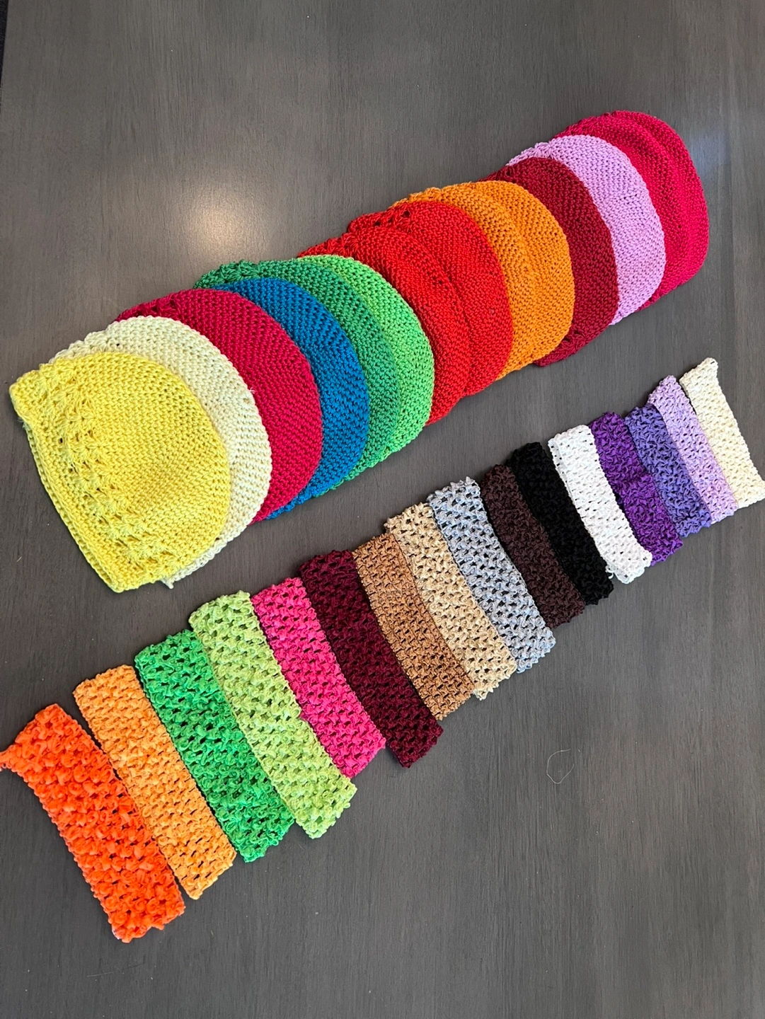 Large variety of colourful hair accessories. Includes many flower hair clips, multiple colours and styles of headbands, and small rhinestone bows. Perfect for crafting or resale.