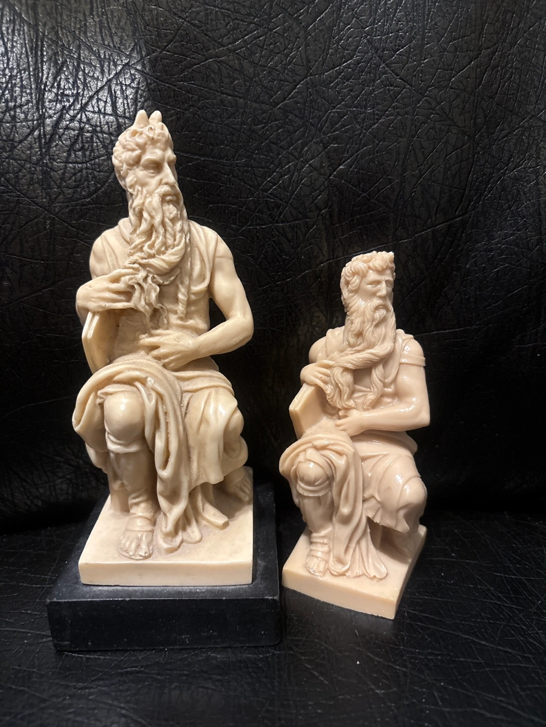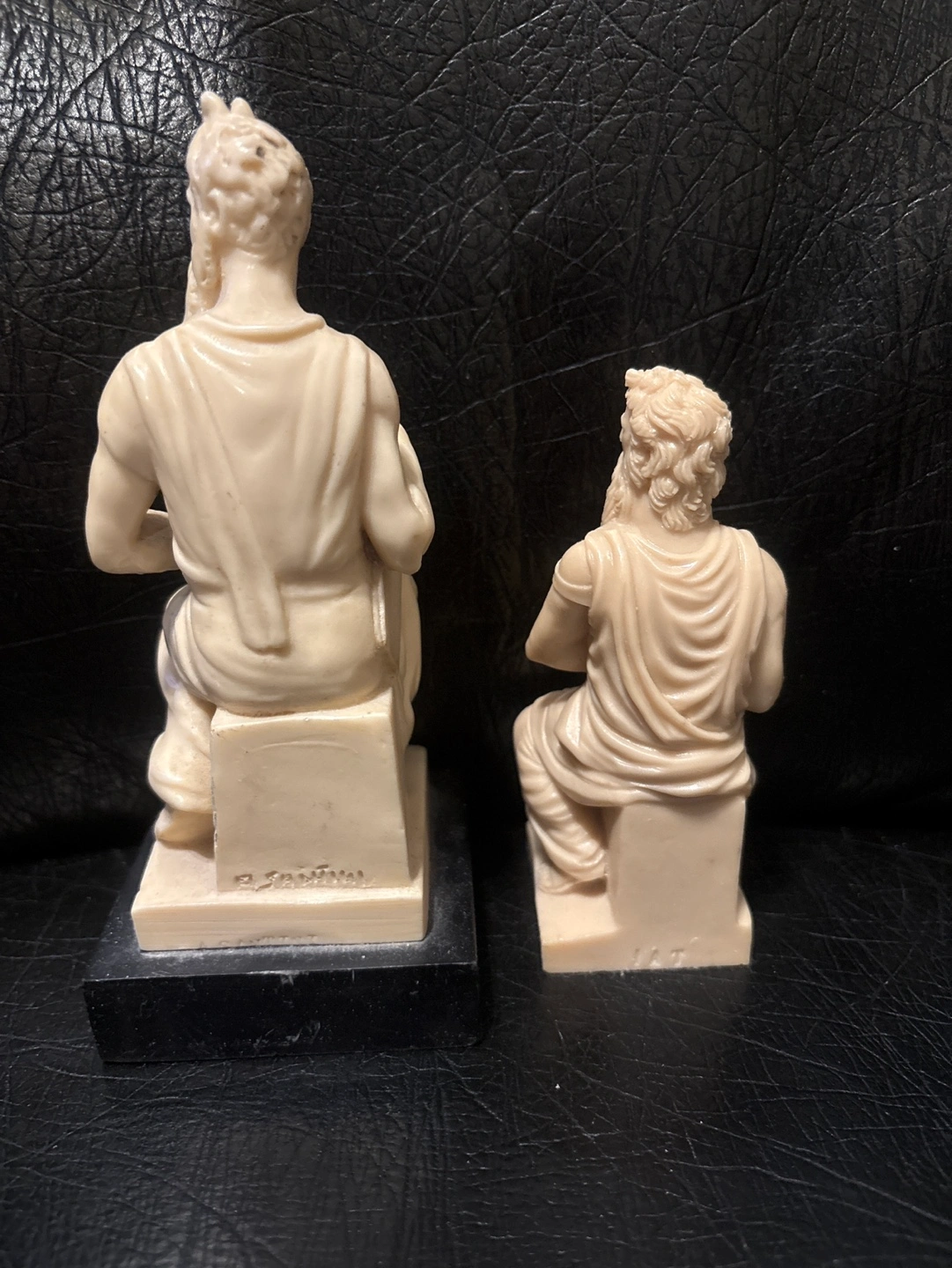 1000+Pair of antique-looking Resin sculptures. Each depicts a bearded man seated on a block. Detailed carvings. Small in size. One statue slightly larger than other. Black marble base on the larger of the 2 but this is almost assuredly the more valuable of the 2. Collectible figurines. #DeclutterChallenge #WinWithUs Available by appt for pick up at 1421 Bloor Street West - inside Martin Espresso Cafe