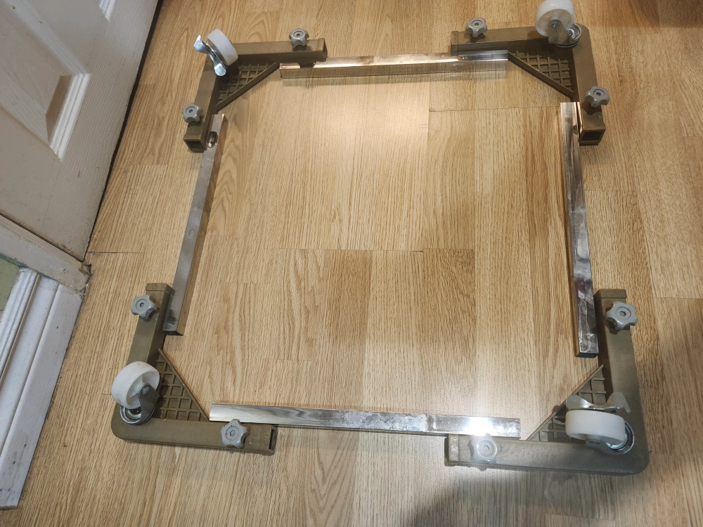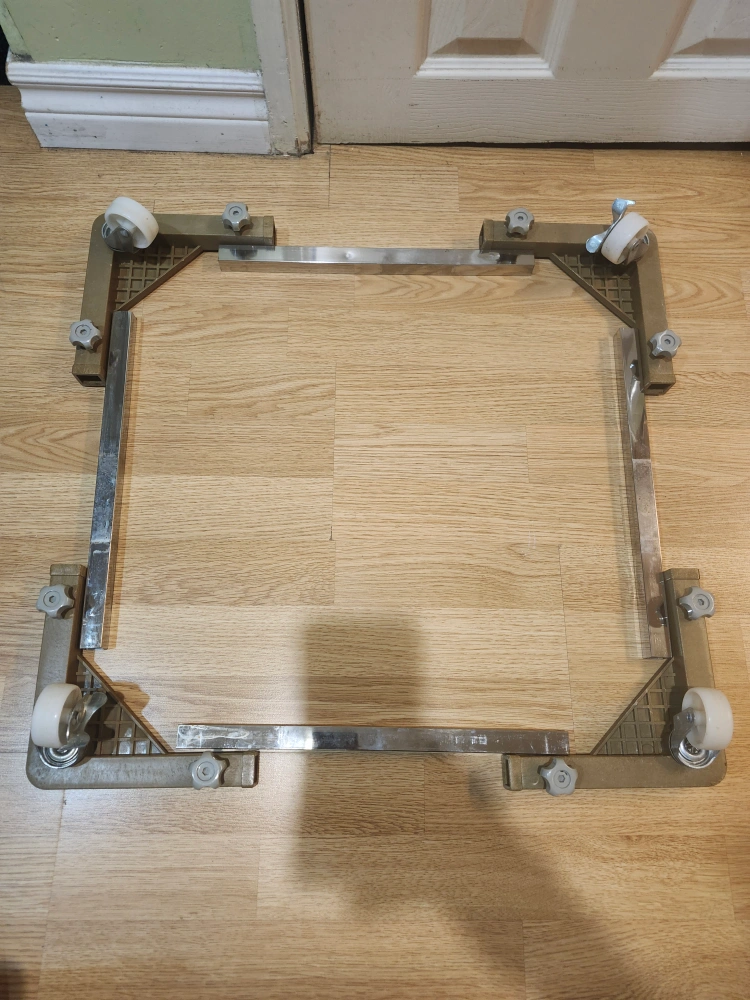 Heavy-duty appliance dolly. Four swivel casters. Durable plastic base. Stainless steel frame. Easy to assemble and use. Great for moving heavy appliances. price only cash only pickup no delivery. pickup 801 O'Connor drive outside TD Canada Trust bank door.