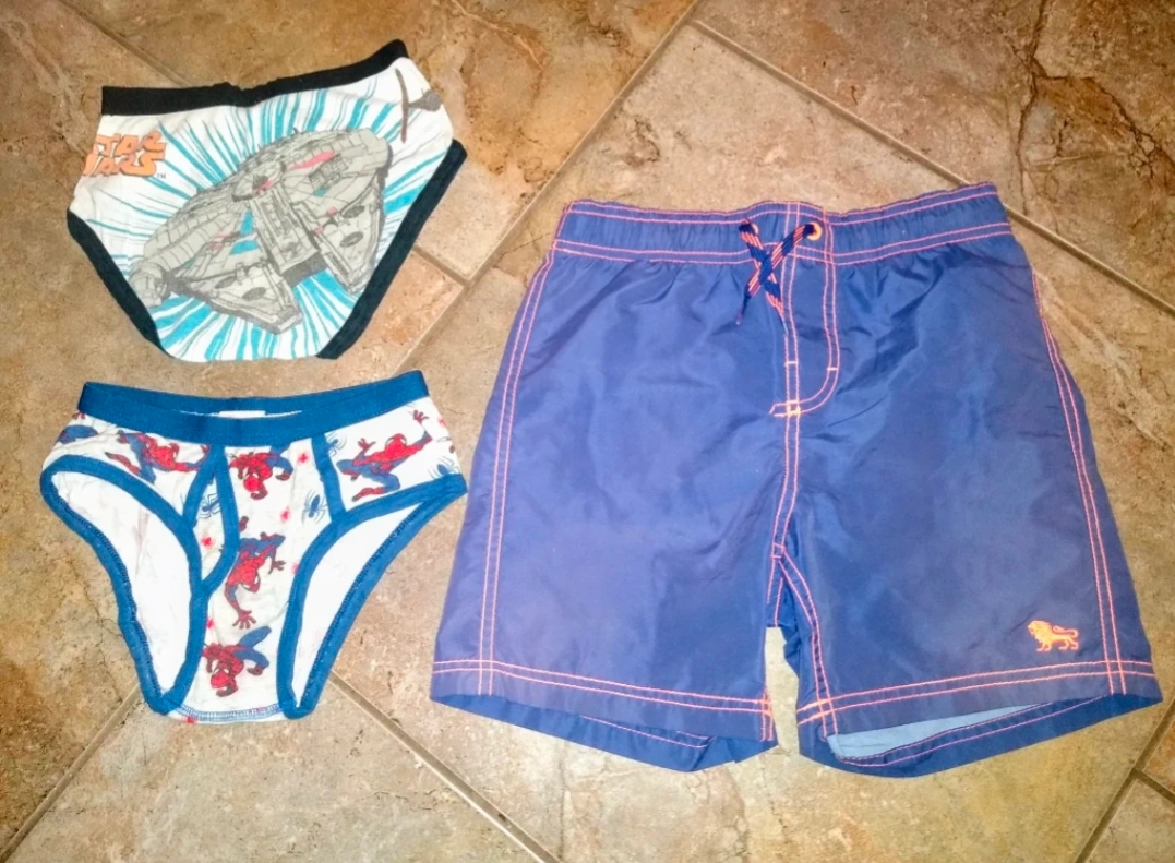 Bundle of boy's clothes sizes 5 and 6 years from The Children's Place, Gymboree and Old Navy. Includes shirts (long and short sleeved), one hoodie, blue jeans, swim shorts and underwear. Total of 12 pieces. All in excellent condition with no stains or rips. From a smoke free and pet free home.