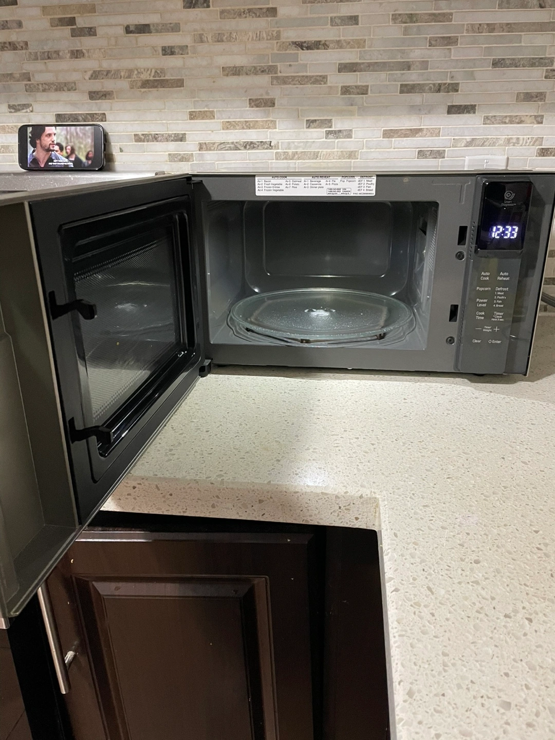 Stainless steel countertop microwave. Designer touch series. Includes turntable. Great for small spaces. Like new, used less than 10 times with no meats. Retails at 220+ taxes. Selling as moving to a new province. Thanks