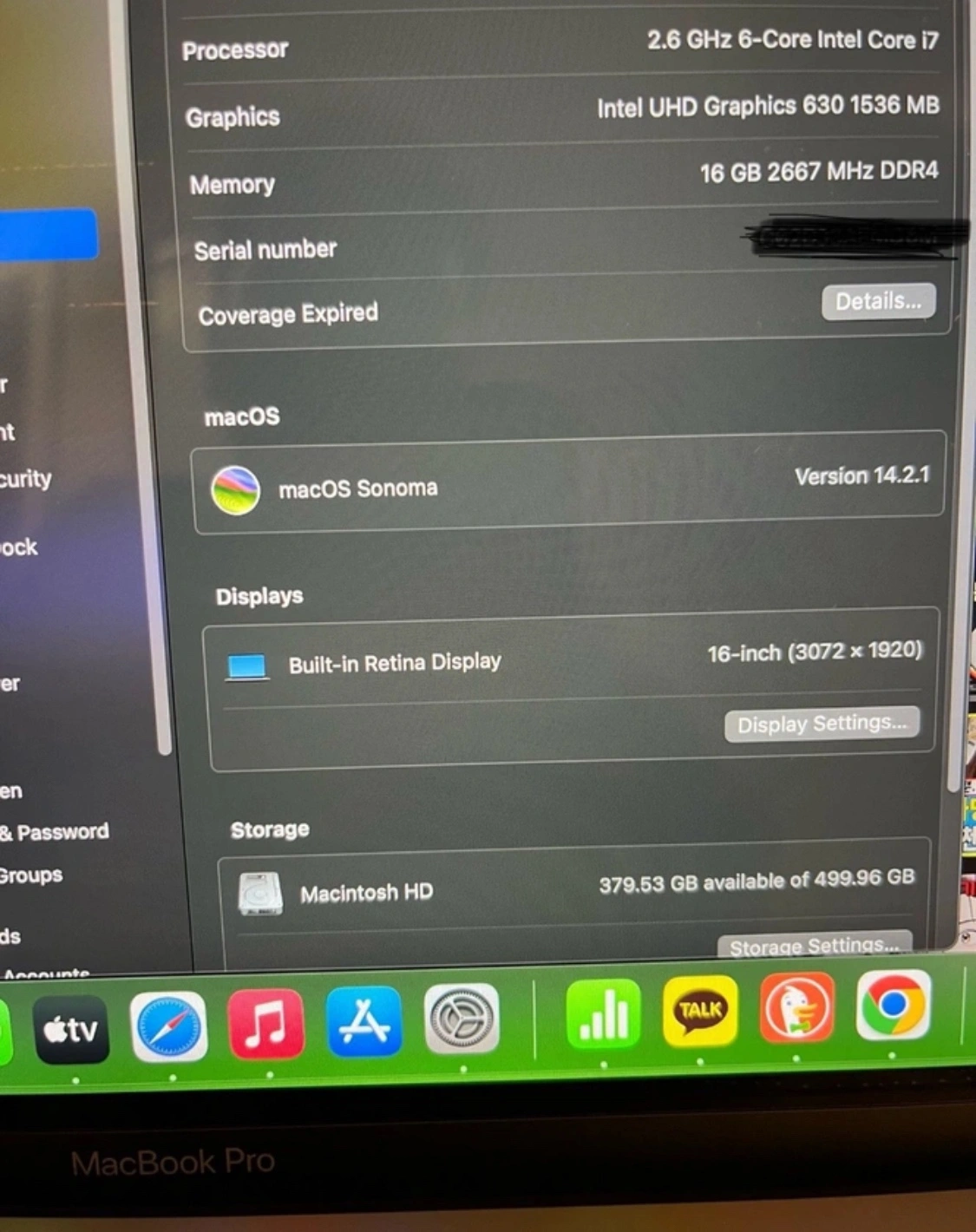 Processor: 2.6 GHz 6-Core Intel Core i7