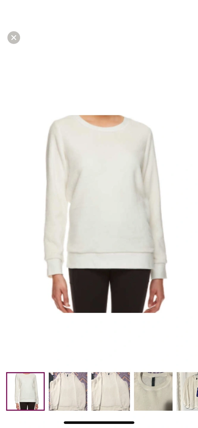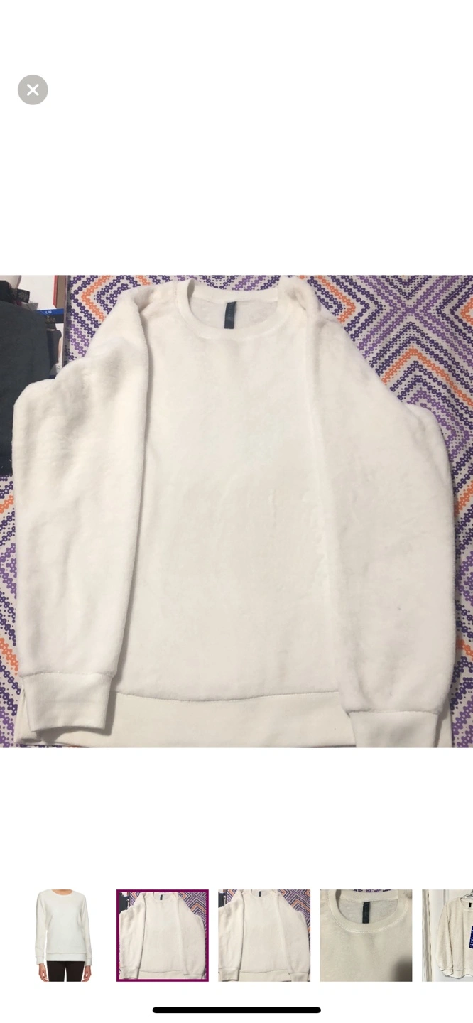 Cozy cream-coloured crewneck sweater. Long sleeves. Soft material. Great for lounging or layering.