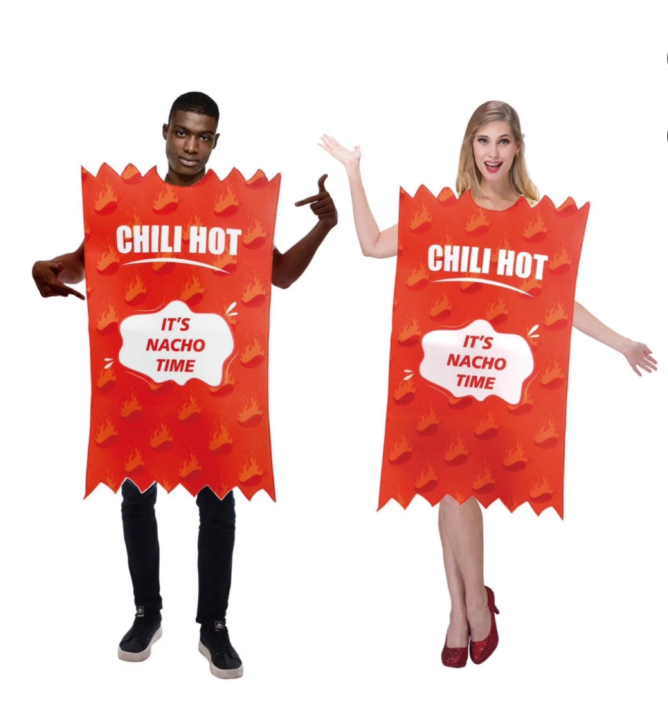One costume has a small mark on the white undershirt - not seen when the chili pack is worn Brand new with tags