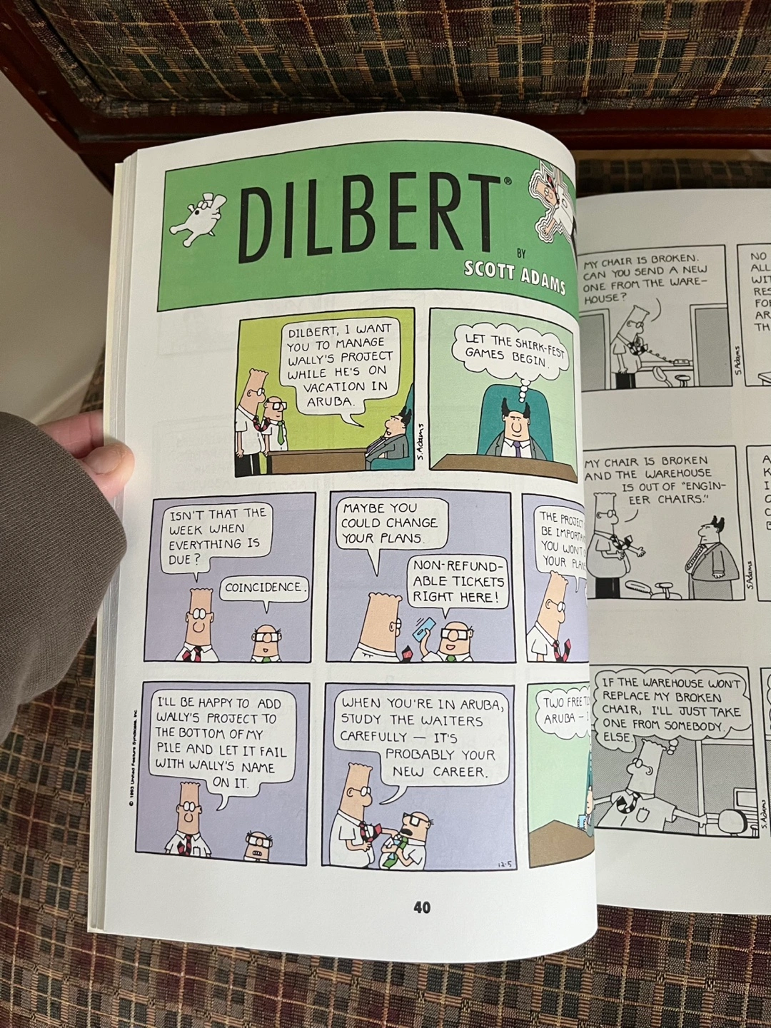 Dilbert comic book. Scott Adams. Features hilarious office cartoons.