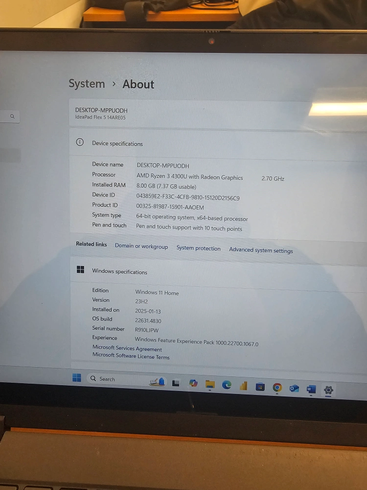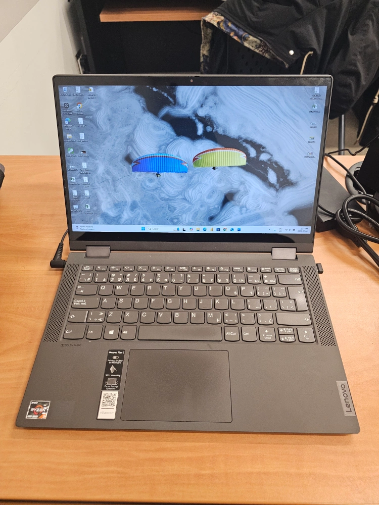 Lenovo ideapad flex 5 Working good 14 inch touch screen laptop Ryzen 3 8gb ddr4 ram 256gb ssd 360 degree hinges, can be use as a tab Windows 11 It's used so few scratches are there as in picture. There is a small chip off as pictured but does not effect functionality. I'll add a slim profile Logitech mouse with it. Thanks Used for college only. Price is negotiable, make cash and trade offers. Thanks again and comes with original 45w charger.