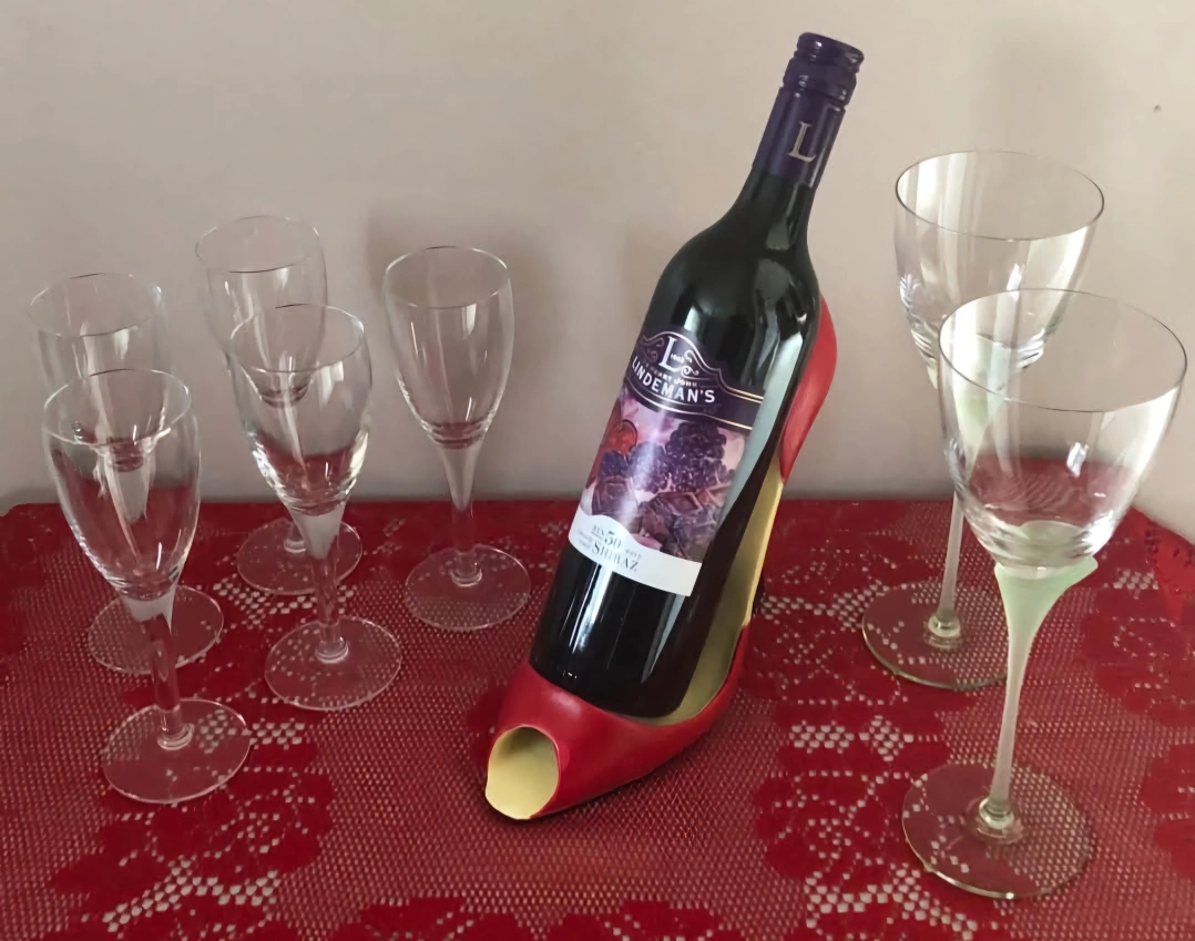Add a touch of sophistication to your bar with this unique vintage wine bottle holder shaped like a red open-toe high heel shoe. Its ceramic material and sturdy design make it a perfect fit for normal size wine bottles up to one capacity as shown in pictures.
