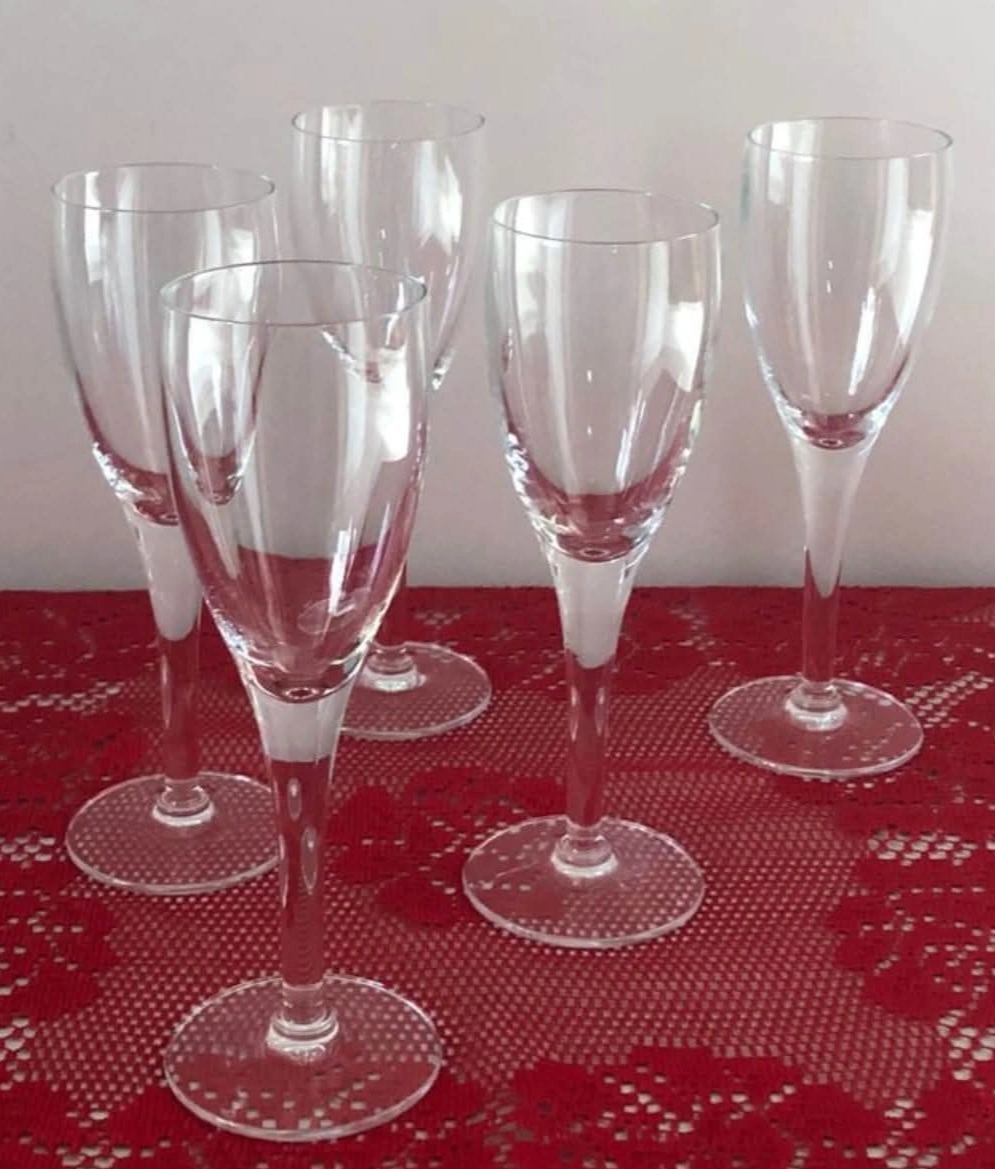 Delicate clear crystal glasses that can be used for serving wine or champagne.