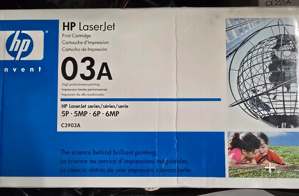 1000+HP LaserJet print cartridge. High performance printing. For 5P, 5MP, 6P, 6MP series printers. Model number C3903A.