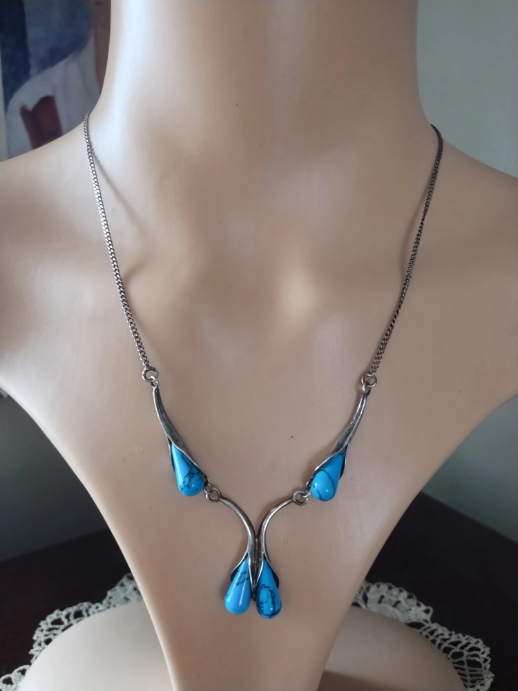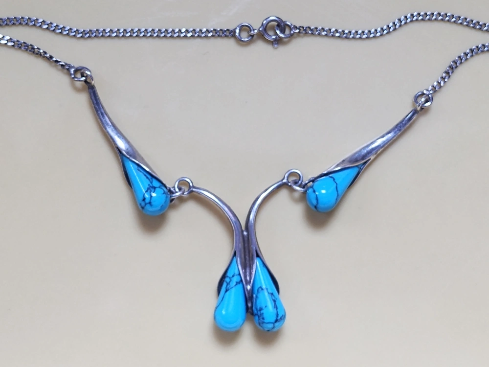 Vintage Necklace made in Poland Turquoise and sterling silver
