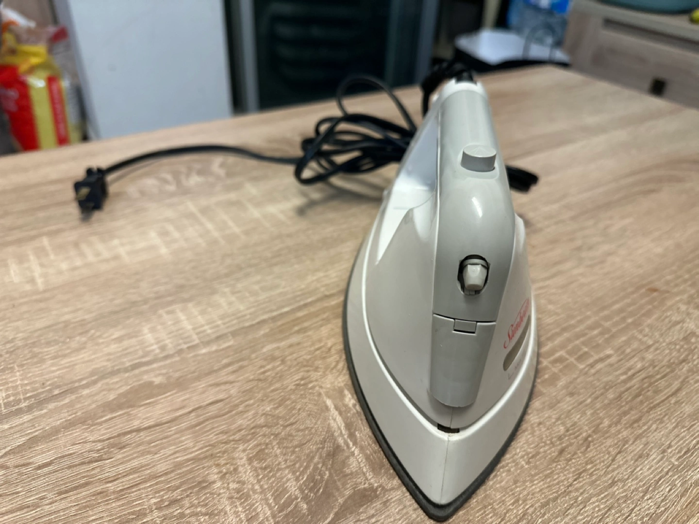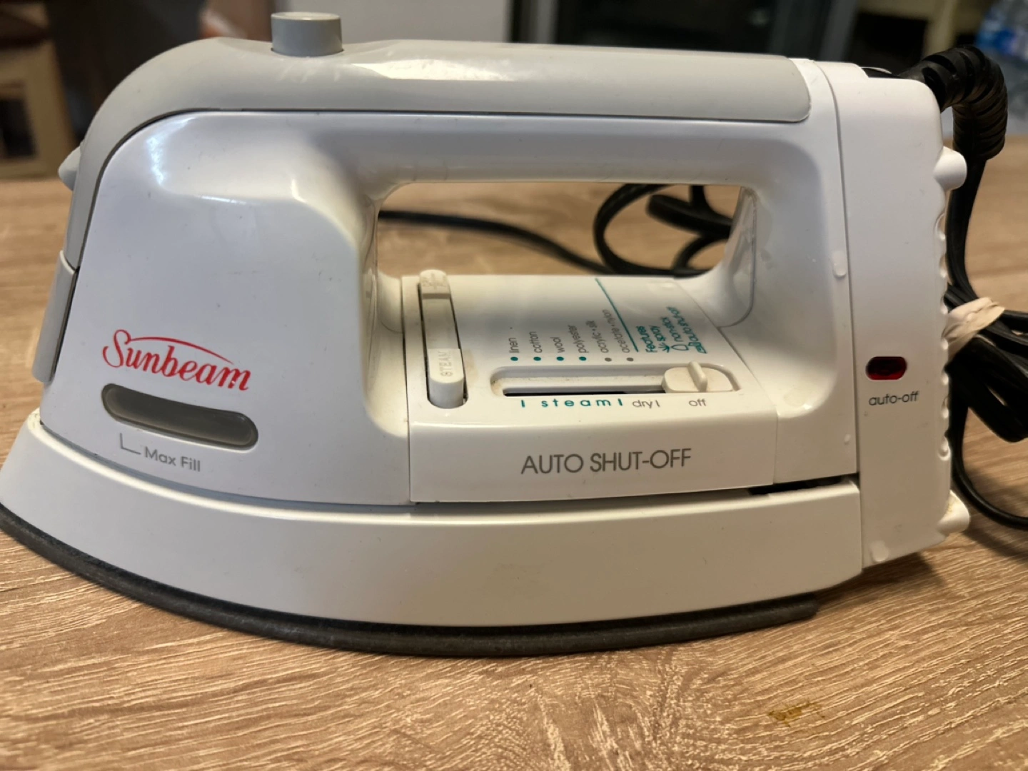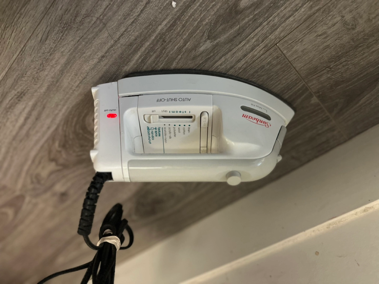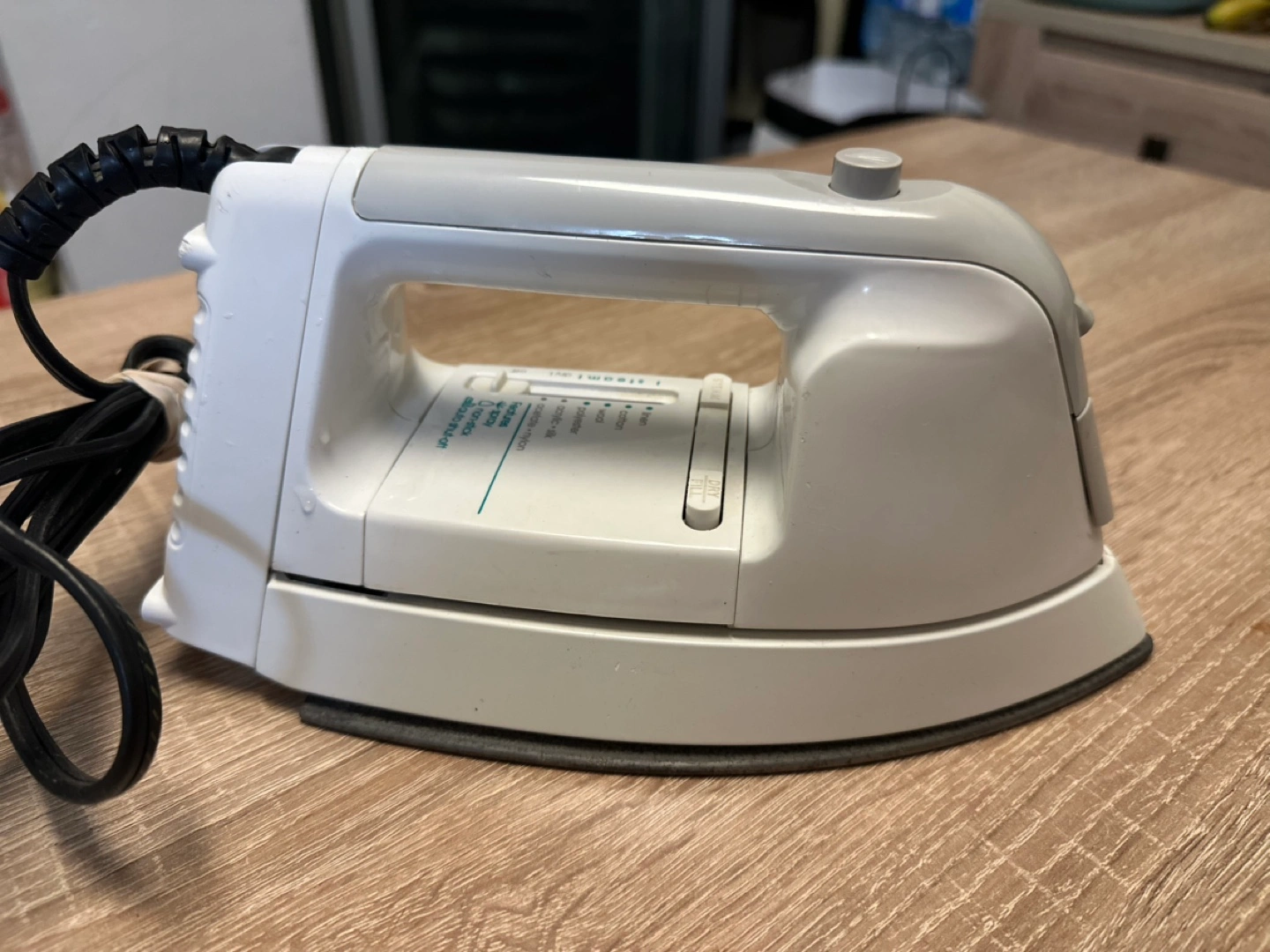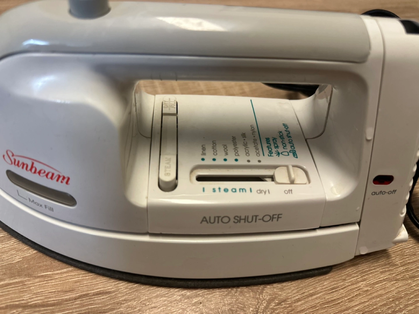 6Small travel iron. Features auto shut-off and multiple fabric settings. Great for small spaces or travel.